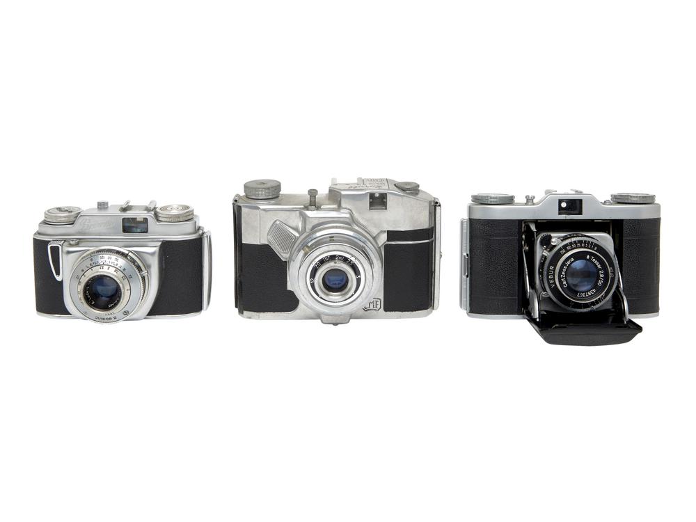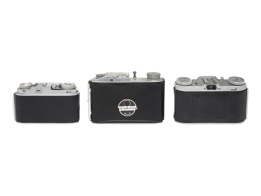 Lotto di tre macchine fotografiche 35/120 mm obiettivo compreso 1. Beier...