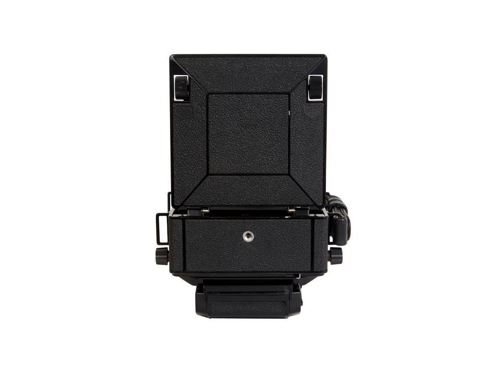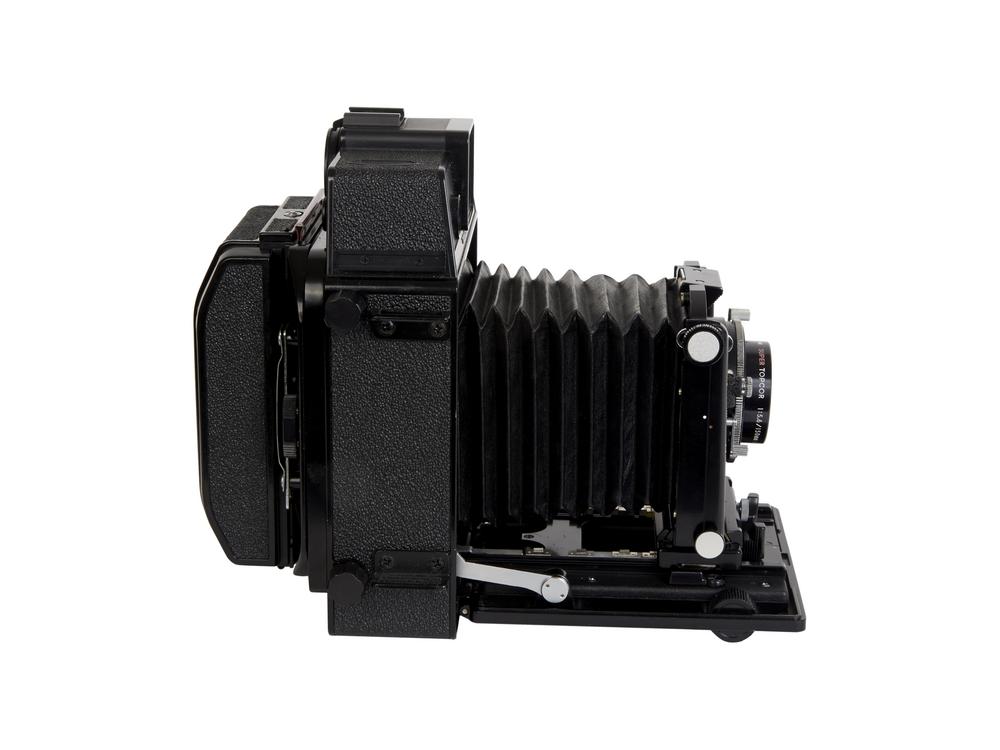 A technical camera of a medium format with interchangeable film back. A complete kit 6x9 cm/9x12 cm with Topcon 65 mm f. 7 lens and the Super Topcor 150 mm f. 5.6 one with various accessories. In almost perfect condition and in working order.
