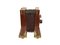 Banco ottico pieghevole in legno formato 18.5x18.5 cm. Finiture e meccanismi in ottone. Completo di vetro smerigliato di messa a fuoco e ottica Hugo Meyer Trioplan 18 cm f. 6 con matricola n°392817. Le parti in legno e il soffietto sono usurati. Rotaia in legno mancante. Con comprensibili segni d'uso dovuti all'età.