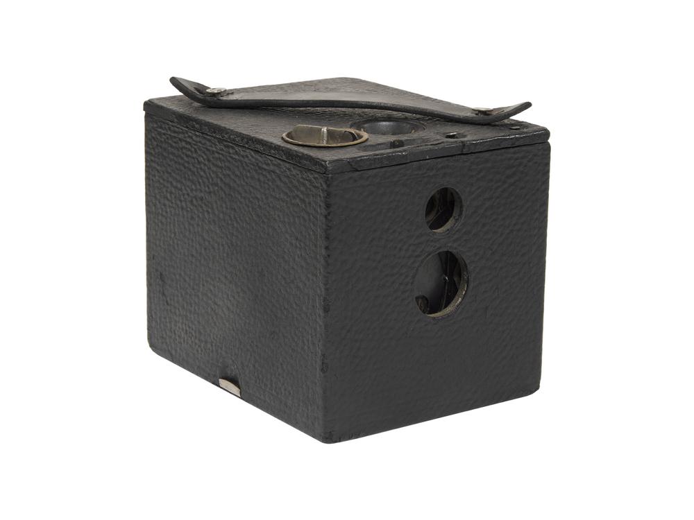 Box Camera per pellicola di tipo 101. Con lo chassis in legno rivestito di pelle. Nel complesso in buone condizioni, con comprensibili segni d'uso dovuti all'età.
