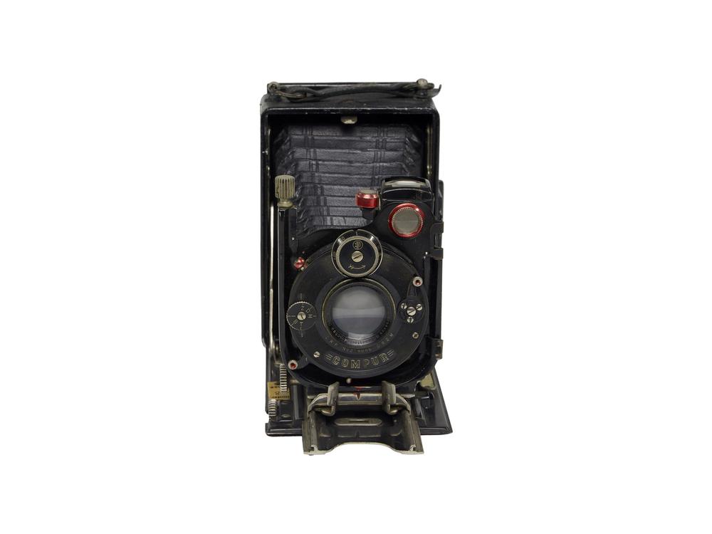 Folding Camera using 6.5x9/9x12/10x15 cm plates. Equipped with a Rodenstock shift lens on the Compur shutter. In a normal use condition. Not tested. Possible malfunctions and/or missing parts.