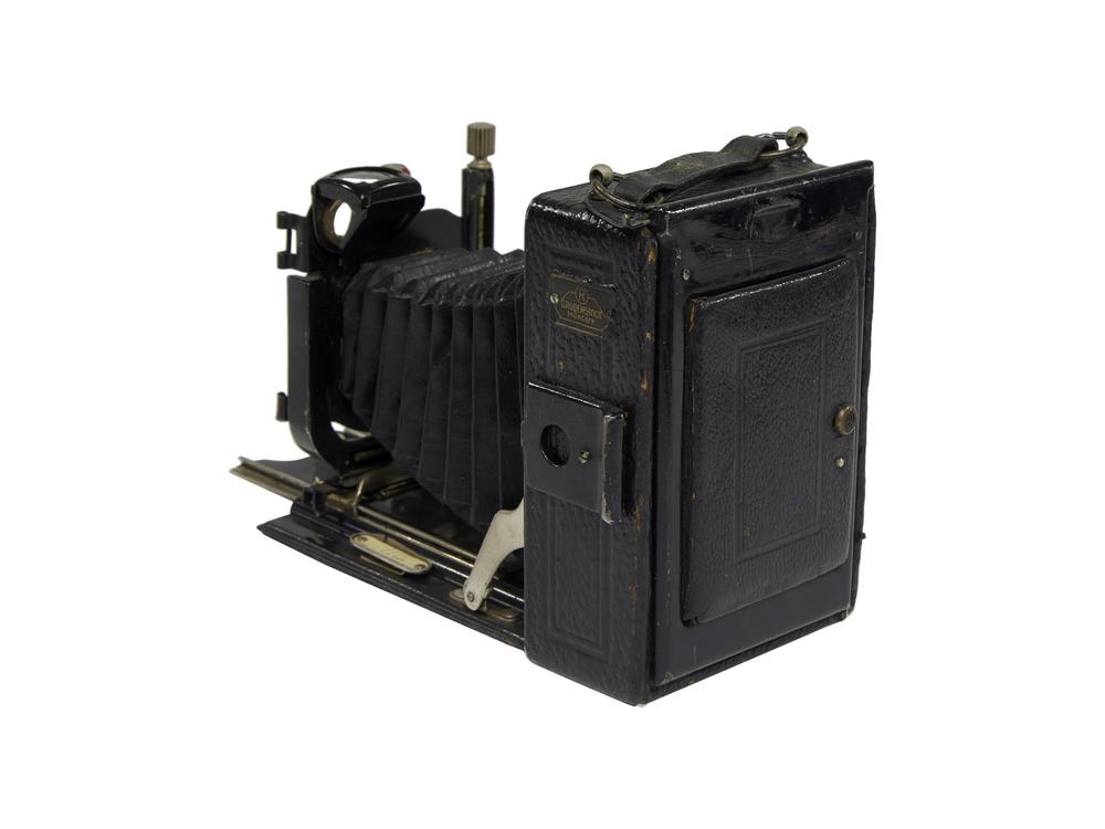 Folding Camera di tipo pieghevole per lastre formato 6.5x9 / 9x12 / 10x15 cm. Dotata di ottica decentrabile Rodenstock con otturatore Compur. Condizioni da normale utilizzo. Non testata. Possibili malfunzionamenti e/o parti mancanti.