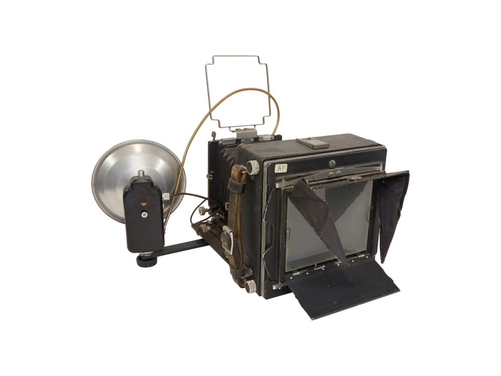 Folding Camera using 9x12 cm plate, with side flash. Equipped with Carl Zeiss Jena Tessar 13.5 cm f. 4.5 lens with serial number 1072178 on the Zeiss Ikon Compur shutter. In a normal use condition. Not tested. Possible malfunctions and/or missing parts.