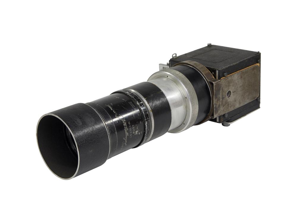 A camera of German origin. An SLR that uses plates or a 120 film format. Equipped with rare J. H. Dallmeyer, London lens with serial number 91490. In a normal use condition. Not tested. Possible malfunctions and/or missing parts.