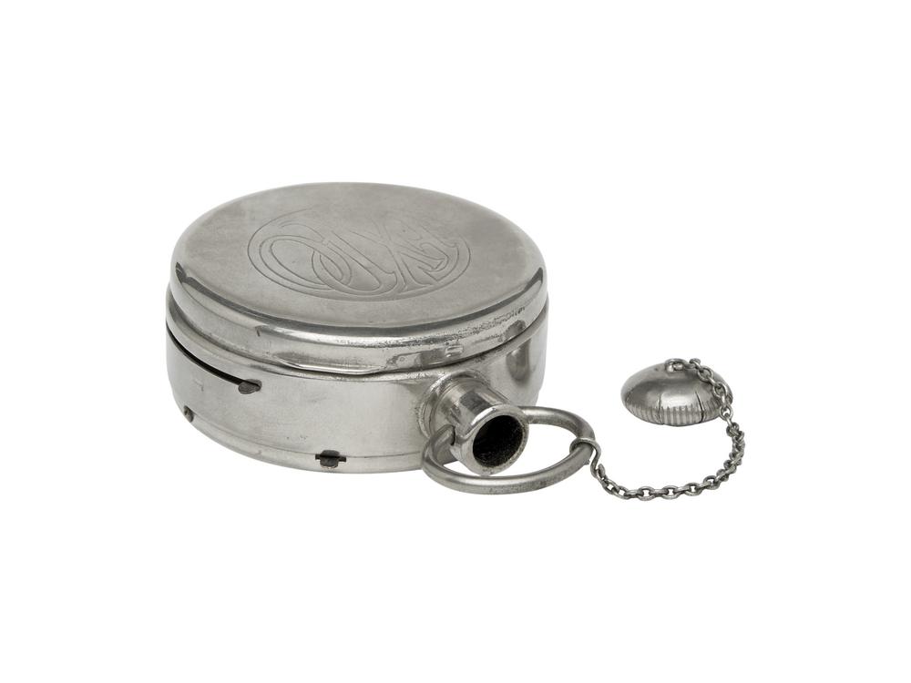 Camera Spia con le sembianze di un orologio da taschino. Utilizza una pellicola formato 16x22 mm con un caricatore a cassetta da 25 esposizioni. La lente si trova nella parte superiore, dove solitamente è posto il meccanismo di carica dell'orologio. Nel complesso in buone condizioni, con comprensibili segni d'uso dovuti all'età. Non testata. Possibili malfunzionamenti e/o parti mancanti.