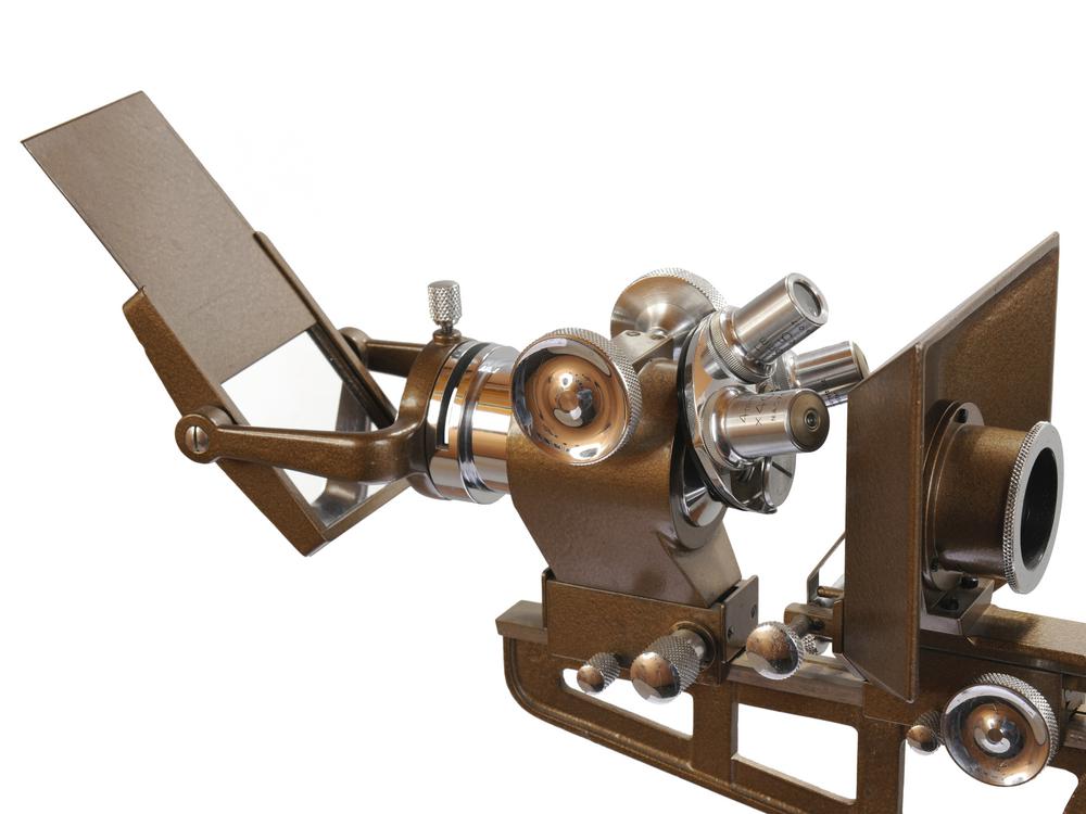 Micro-proiettore di precisione Prodotto dalla Flatters & Garnett Ltd. di Manchester. Completo di: portalampada, condensatore con diaframma a iride, illuminazione elettrica, camera del liquido, specchio regolabile e torretta a tre lenti con lenti. Un pezzo identico è esposto al Museum of the History of Science di Oxford. Tutto in ottime condizioni.