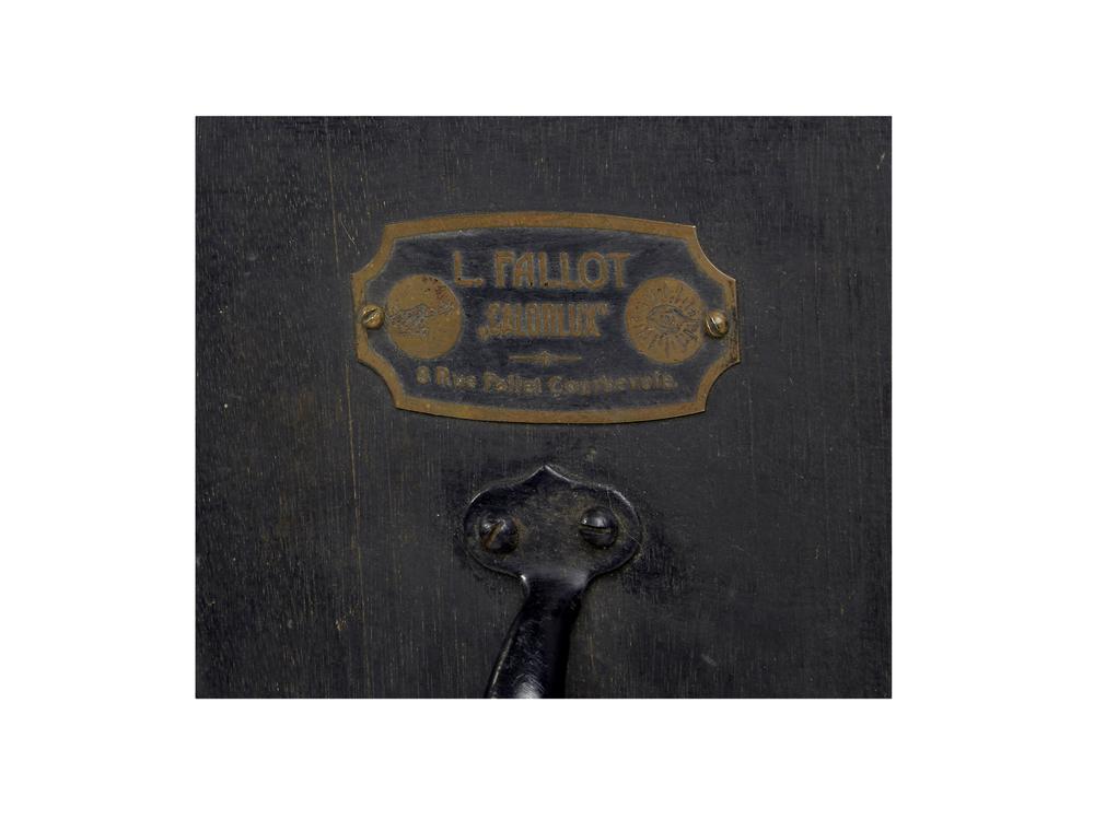 Lanterna magica in legno prodotta a Parigi dalla L. Fallot. Completa di ottica in ottone. Nel complesso in buone condizioni. Con comprensibili, segni d'uso dovuti all'età. Non testata. Possibili malfunzionamenti e/o parti mancanti.