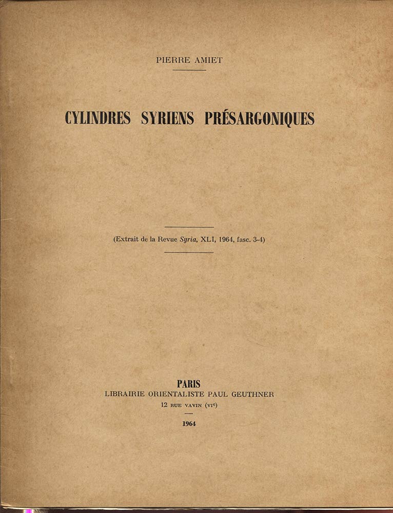 AMIET P. - Cylindres syriens presargoniques. Paris, 1964. Pp.189 – 193, tavv. 1 + ill. nel testo. ril. ed buono stato.