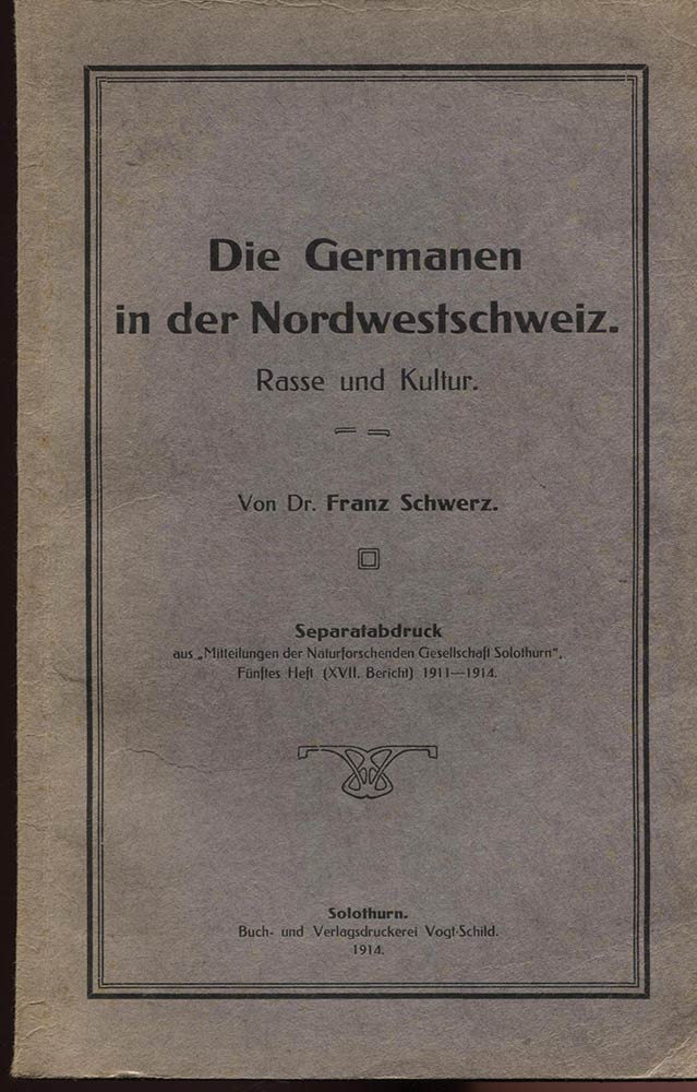SCHWARZ F. – Die Germanen in der Nordwestschweiz. Solothurn, 1914. Pp. 64, tavv. 7, + i carta. Ril. ed. buono stato, raro.