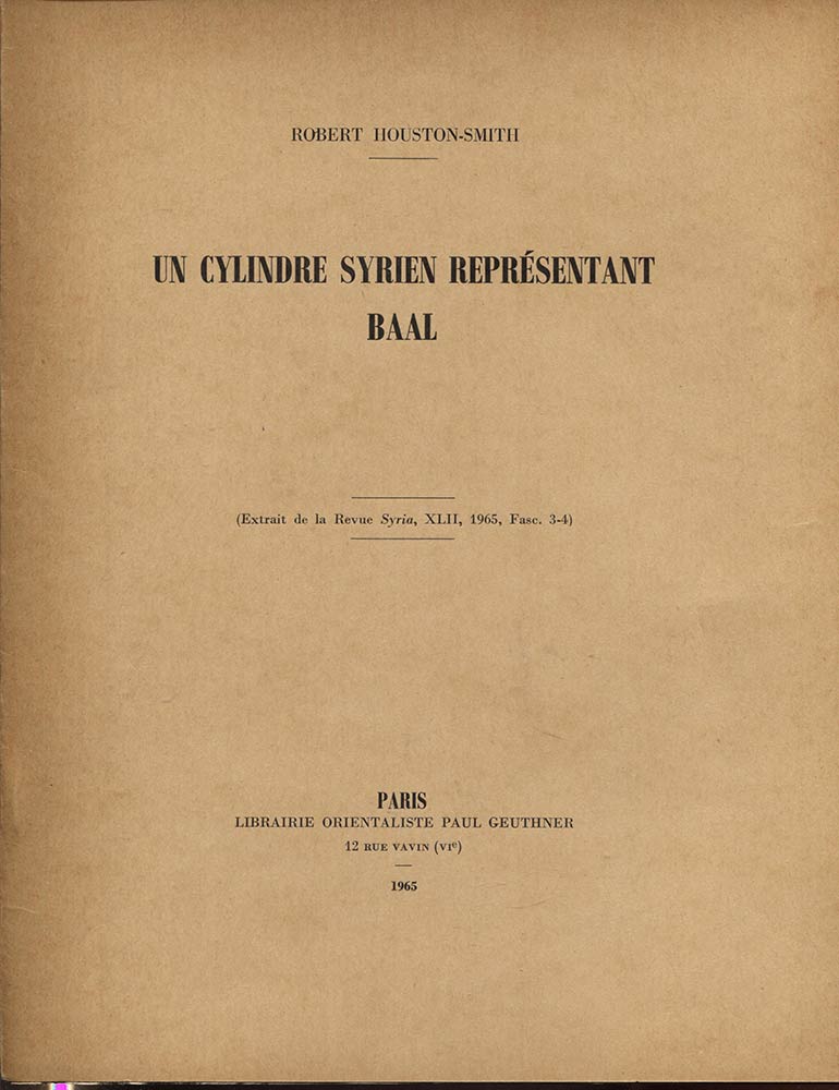 SMITH -H. R. – Un cylindre syrien representant Baal. Paris, 1965. Pp. 253 – 260, ill. nel testo. ril. ed. buono stato.