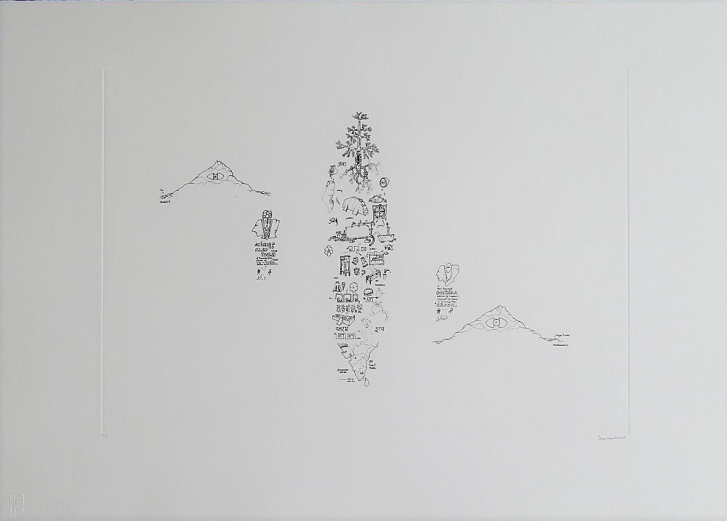 Cartella composta da 3 grafiche di Gianfranco Baruchello, Ugo La Pietra e Guido Strazza