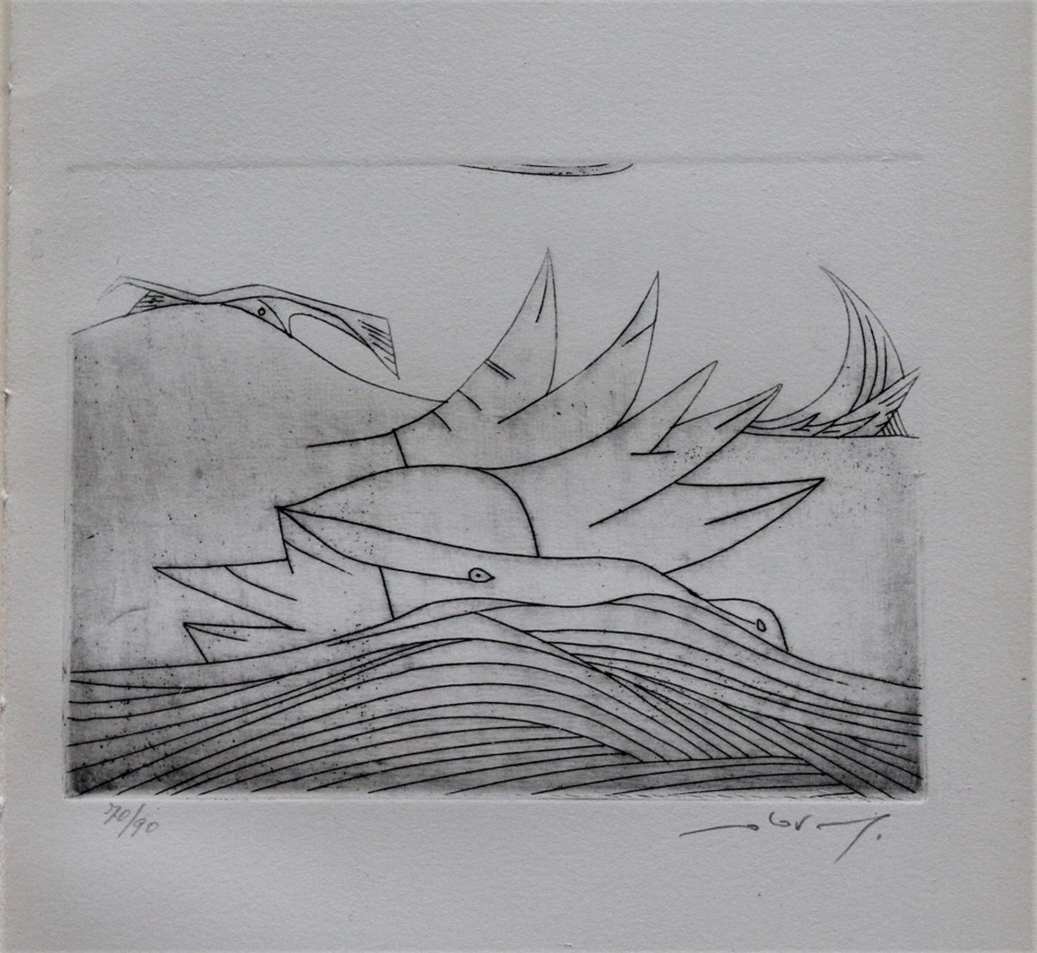 libro composto da due acqueforti di Gianni Dova, del 1969, edizioni Svolta Bologna. Formato cm 35x25. Ogni incisione reca firma e numerazione.