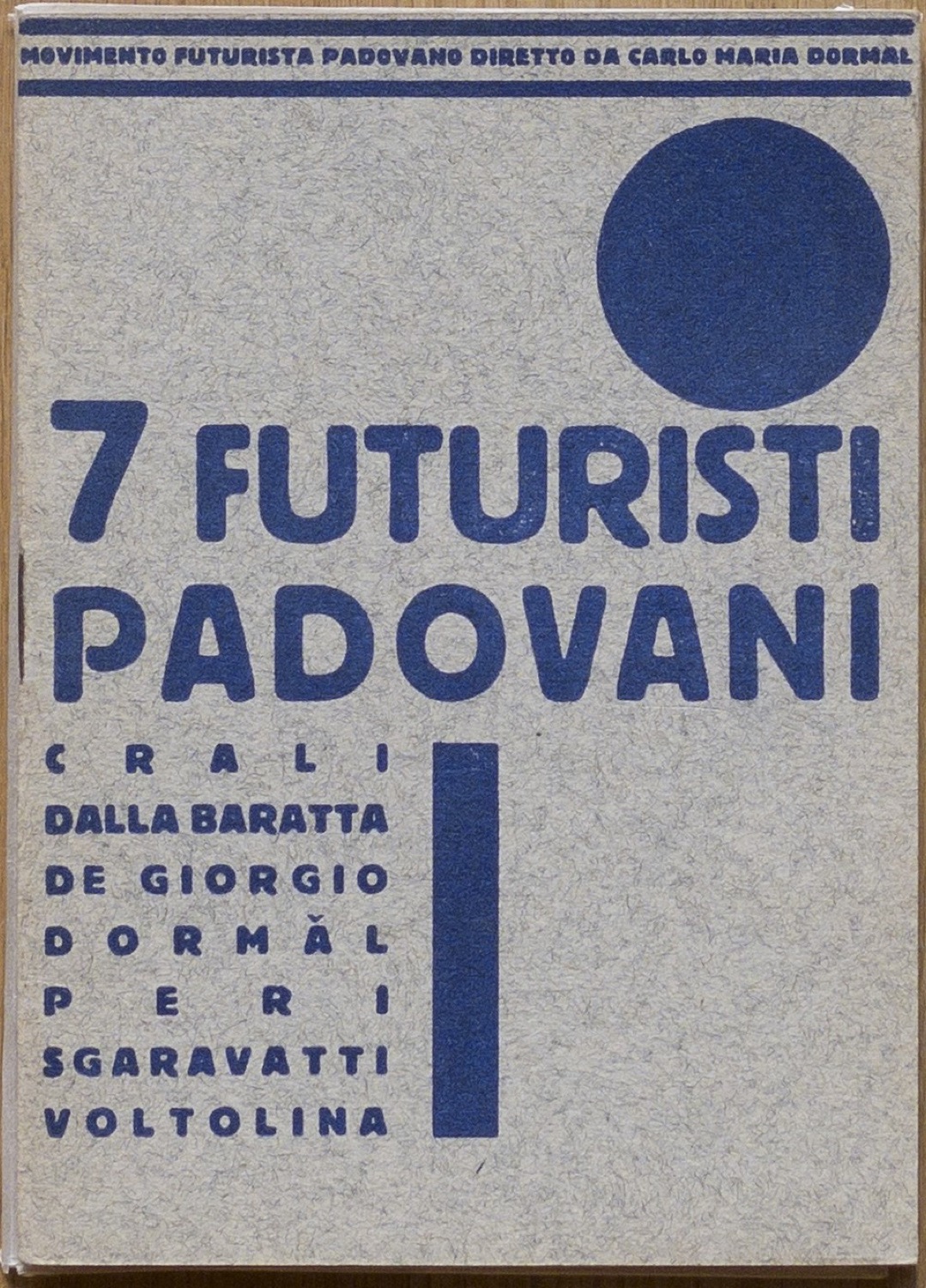 7 Futuristi padovani. Crali - Dalla Baratta - De Giorgio - Dormàl - Peri - Sgaravatti - Voltolina (Padova), Movimento Futurista Padovano, [stampa: Tipografia La Garangola], 1931, 17x12,3 cm., brossura, pp. [24]