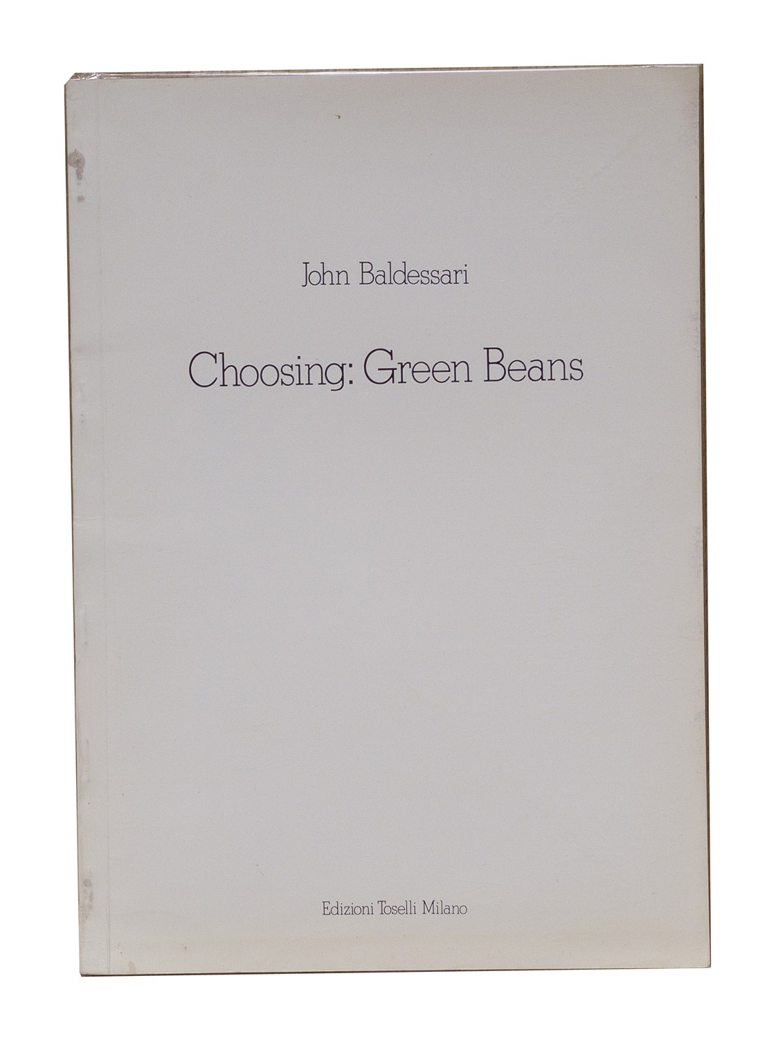 Copertina con titolo in nero su fondo bianco, 9 tavole a colori in fotolitografia stampate al solo recto nel testo. Design A.Sganzerla. Testo di John Baldessari in italiano e inglese. Tiratura di 1.500 esemplari. Prima edizione. [Bibliografia: Anne Moeglin Delcroix, «Esthétique du livre d’artiste. Una introduction à l’art contemporain», Paris, Le Mot et Le Reste / Bibliothèque Nationale de France, 2011: pag. 317].