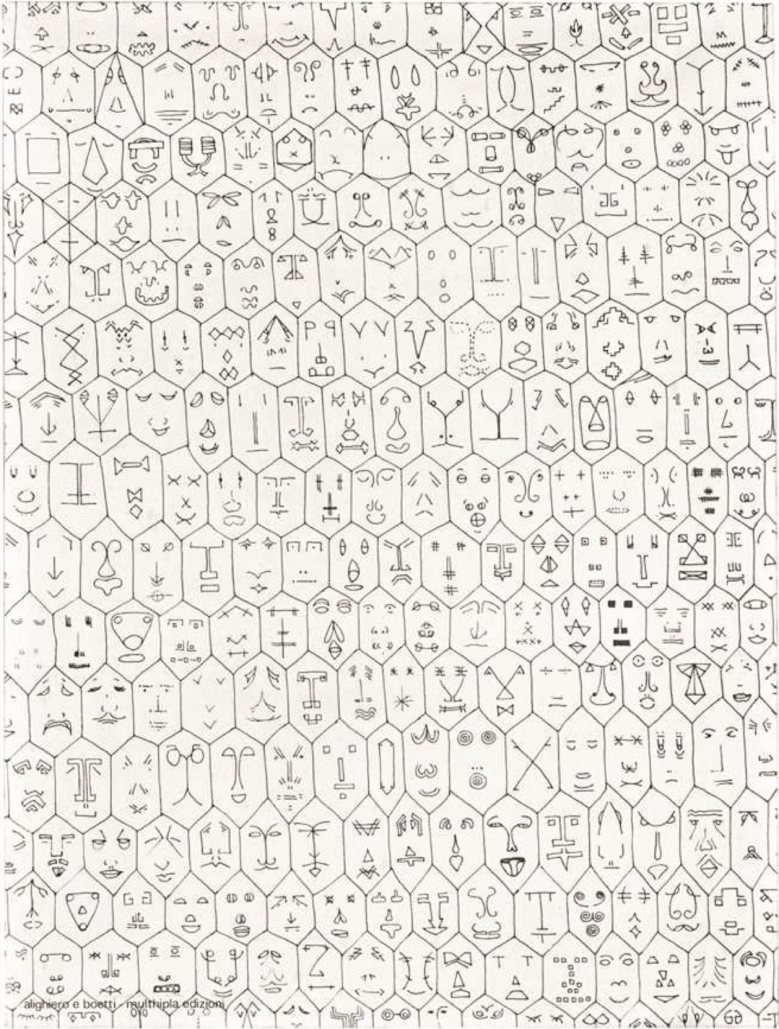 Bibliografia: Agata Boetti, Il gioco dell’arte, Milano, Electa, 2016: pp. 168-169: Giorgio Maffei - Maura Picciau, Alighieri e Boetti. Oltre il libro – Beyond books, Mantova, Edizioni Corraini, 2011: pag. 265