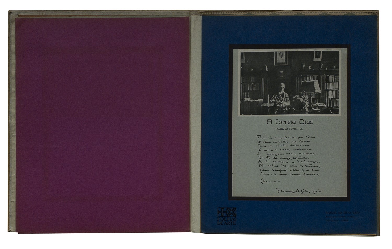 Esemplare con firma autografa di Augusto Santarita al retro del piatto della cartella. “Dedicada à divulgação das Artes e dos autores nacionais, consagrou o primeiro nº à Poesia portuguesa e contou com a colaboração poética de: Branca de Gonta Colaço, Virgínia Vitorino, Fernanda de Castro, Gomes Leal, António Nobre, Afonso Lopes Vieira, Augusto Gil, Manuel da Silva Gaio, Américo Durão, Fernando Pessoa; o segundo nº foi dedicado à Canção (ao “Lied nacional”) e nele colaboraram: Ruy Coelho, Maria Antonieta Lima Cruz, Luís de Freitas Branco, Cláudio Carneiro, Ivo Cruz, Fernandes Fão; exemplar completo uma vez que o terceiro nº, sobre a Pintura, não viria nunca a ser publicado. A revista identifica com uma reprodução fotográfica cada um dos seus diversos colaboradores. De salientar que foi o local escolhido por Fernando Pessoa para a estreia pública de uma das suas poesias.” (‘Canção’).