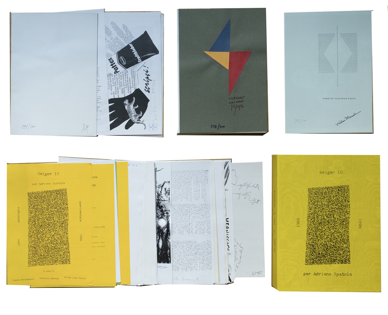 Antologia a cura di Adriano & Maurizio Spatola Geiger 10 per Adriano Spatola 1966 - 1996, Torino, Edizioni Geiger, 29,4x21,5 cm.