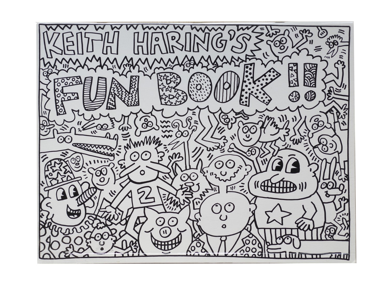 Keith Haring’s Fun Book!!, (Bordeaux), Capc Musee D’art Contemporain, [stampa: “Sur les Presses et avec la participation de Publiprim”], 1985 (14 dicembre), 33 x 43,5 cm., brossura, pp. [24].