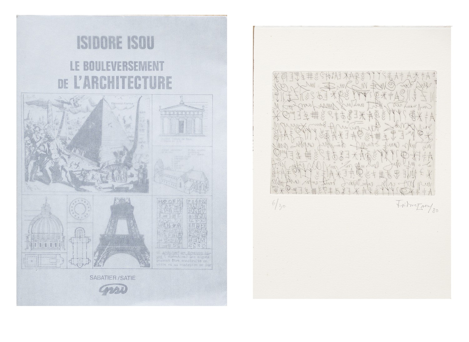 Copertina illustrata in nero su fondo argento, 1 acquaforte originale f.t. numerata e firmata di Isidore Isou. Dopo aver passato in rassegna la storia dell’architettura dalle piramidi al funzionalismo, Isou passa a proporre delle idee guida per una nuova architettura. Tiratura complessiva di 200 copie. Esemplare nella tiratura di 30 con acquaforte originale. Presentazione di Roland Sabatier.