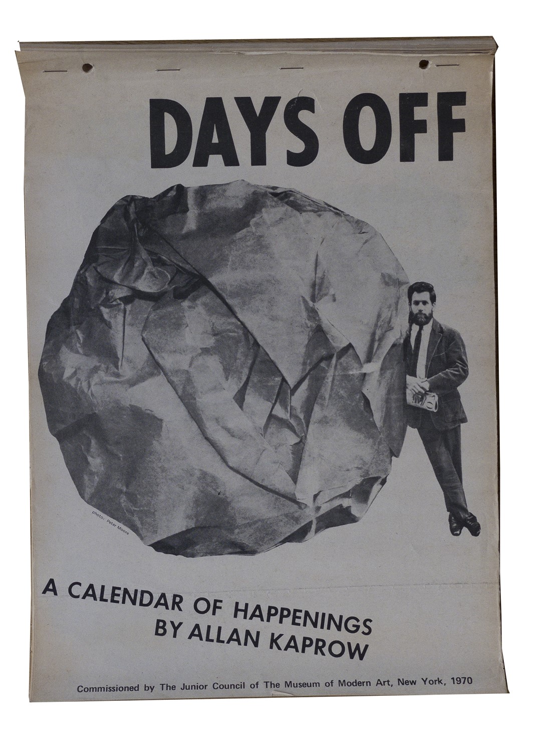 Days Off. A Calendar of Happenings by Allan Kaprow, New York, The Junior Council of the Museum of Modern Art, 1970, 38,5x27,3 cm., brossura a 4 punti metallici in forma di calendario, con due fori per archiviazione al bordo superiore, pp. [64].