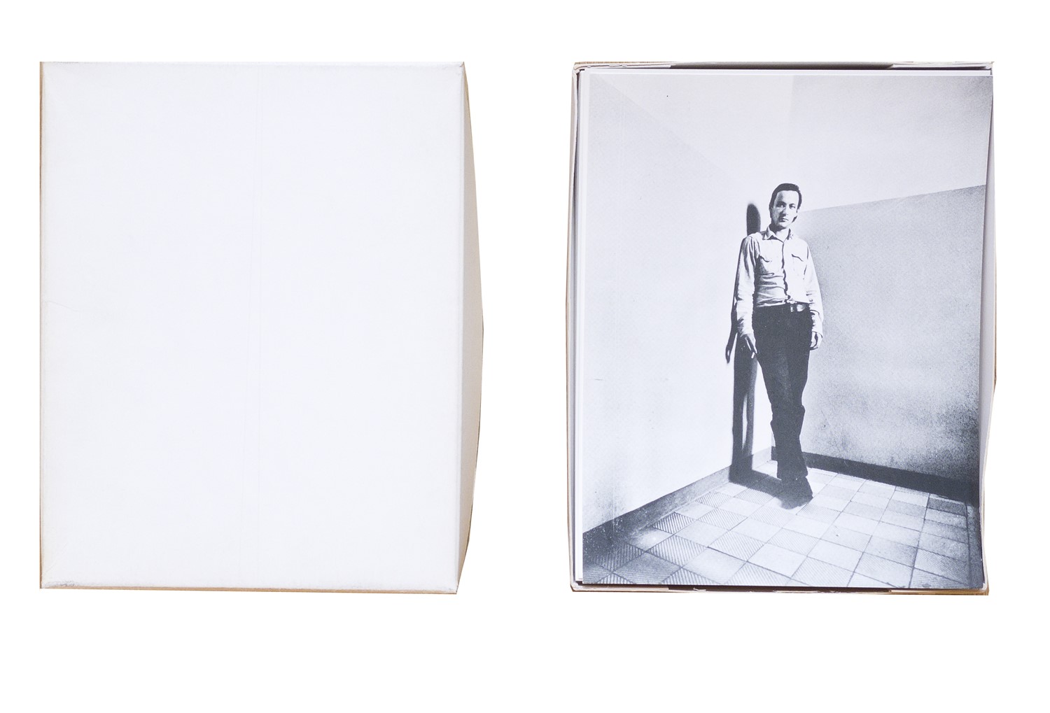 Scatola in cartoncino leggero bianco contenente 1 tavola sciolta con un ritratto fotografico dell’artista di L. Wolleh, 1 tavola sciolta con il frontespizio, 1 tavola sciolta con un testo di Johannes Cladders (direttore del museo Städtishe Museo Mönchengladbach), 1 tavola sciolta con l’elenco delle opere non riprodotte e 30 tavole sciolte illustrate, sette delle quali a colori, con riproduzioni di opere dell’artista, complessivamente 34 tavole stampate su carta fotografica. Un intervento a matita dell’artista sul piatto della scatola (due linee sottili parallele). 440 copie numerate. Multiplo e catalogo originale della mostra (Städtisches Museum Mönchengladbach, 22 gennaio - 25 febbraio 1973).