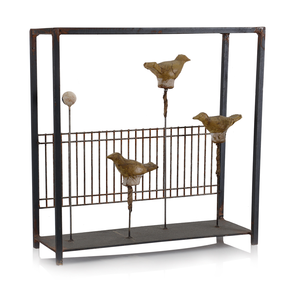 ANTONIO IEVOLELLA Benevento 1952  Senza titolo scultura in metallo e materiali vari cm. 40x40x14, firma sotto la base, certificato di provenienza della Galleria Allegrini Arte Contenporanea (BS) allegato.