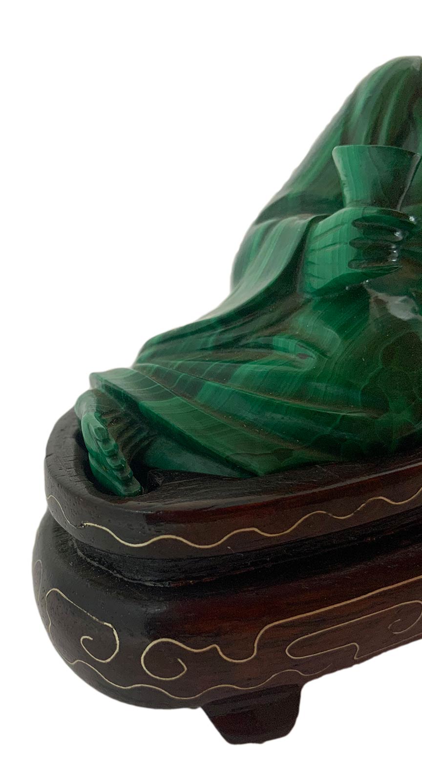 Statuetta cinese in malachite di colore verde chiaro raffigurante Dio Jurojin...