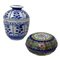 Piccolo vaso cinese con coperchio decorato (Thai) e scatolina porcellanata...