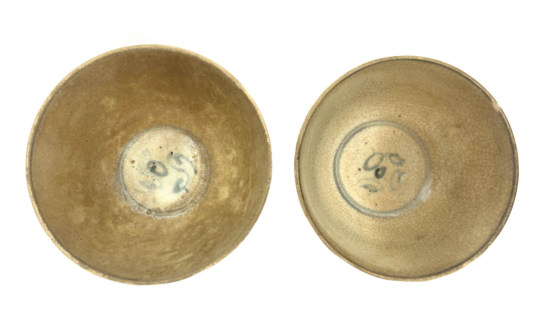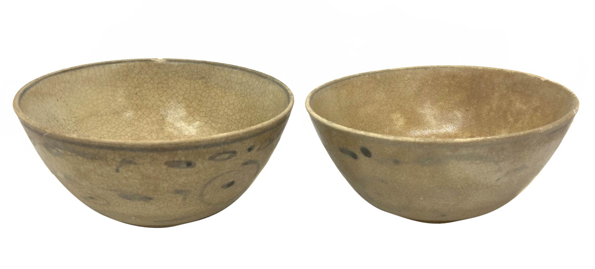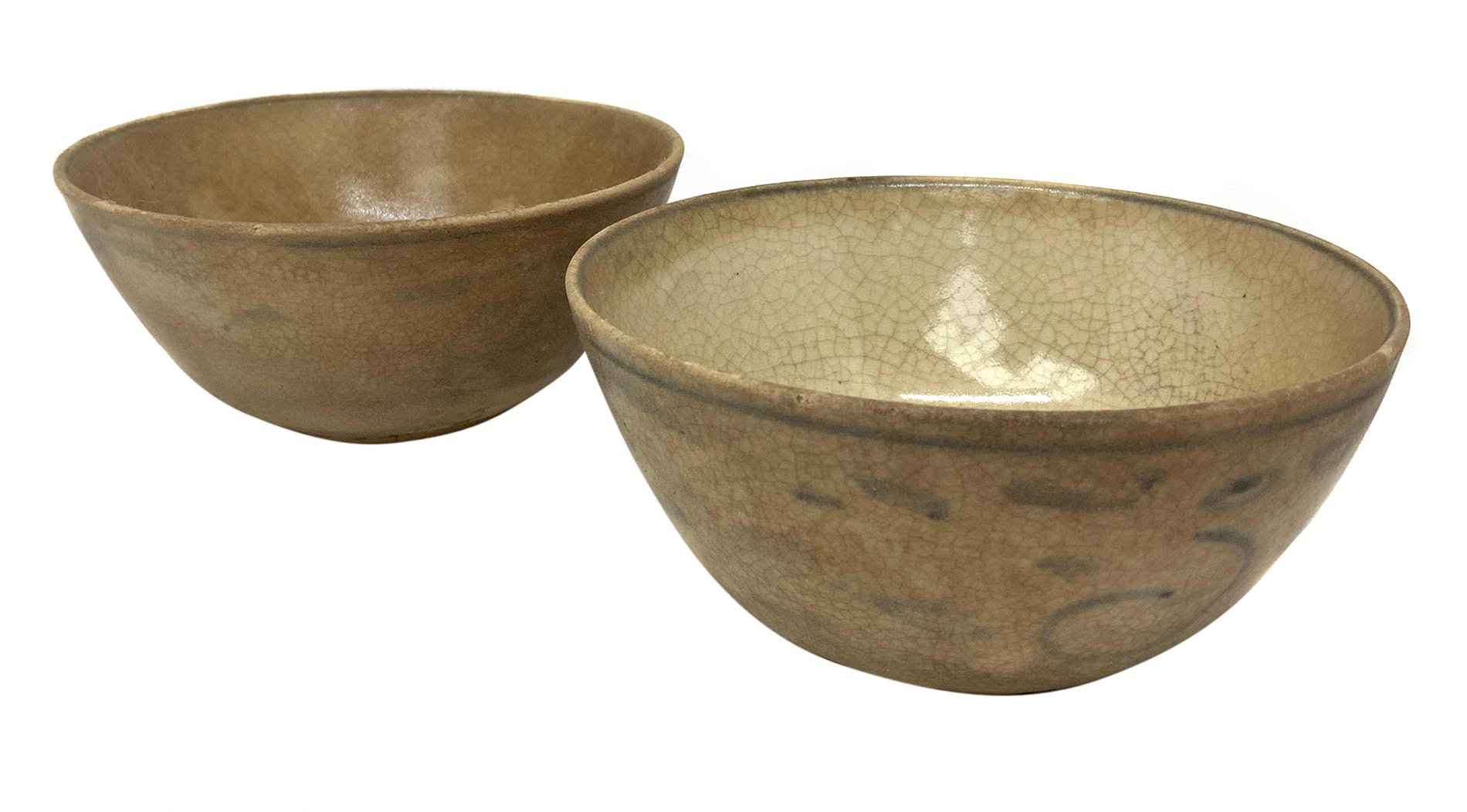 Due ciotole in ceramica smaltate in celadon con decori in blue, periodo “annam” (Vietnam/Cina) XVII°-XVIII°.