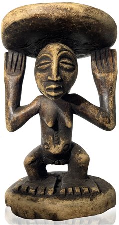 Poggianuca in legno kakwa, Uganda, XX secolo, cm 21 x 14.