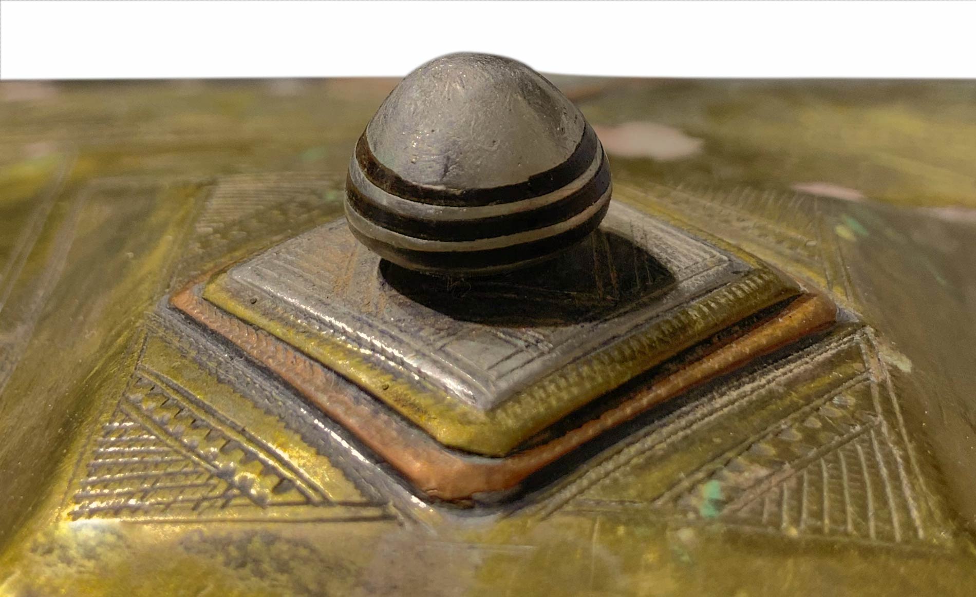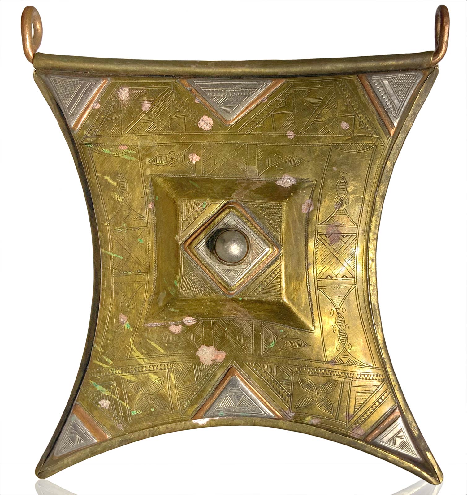 Pendente-amuleto in argentone touareg, con versetti coranici, Mali, XX secolo. Cm 12x12.