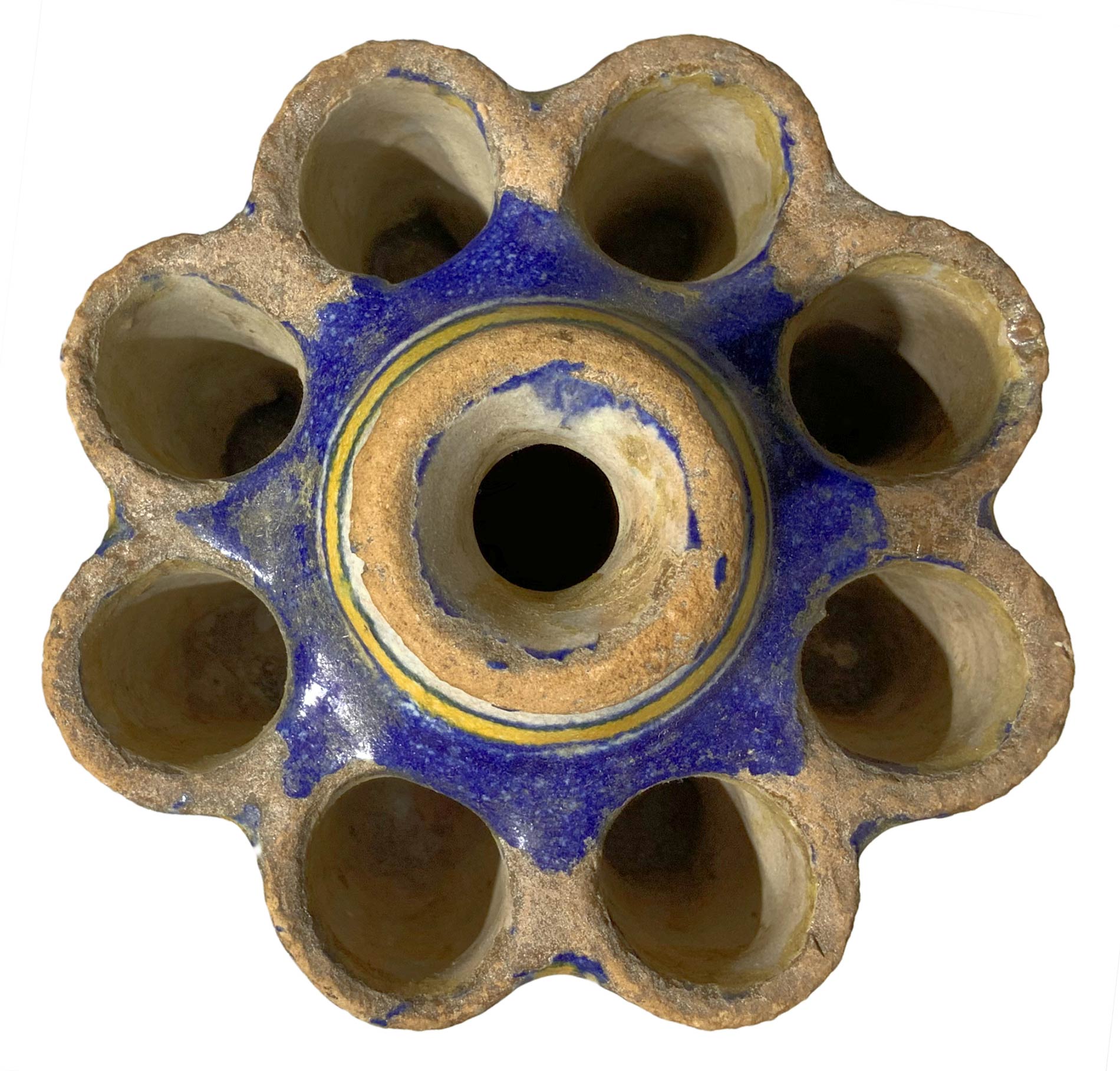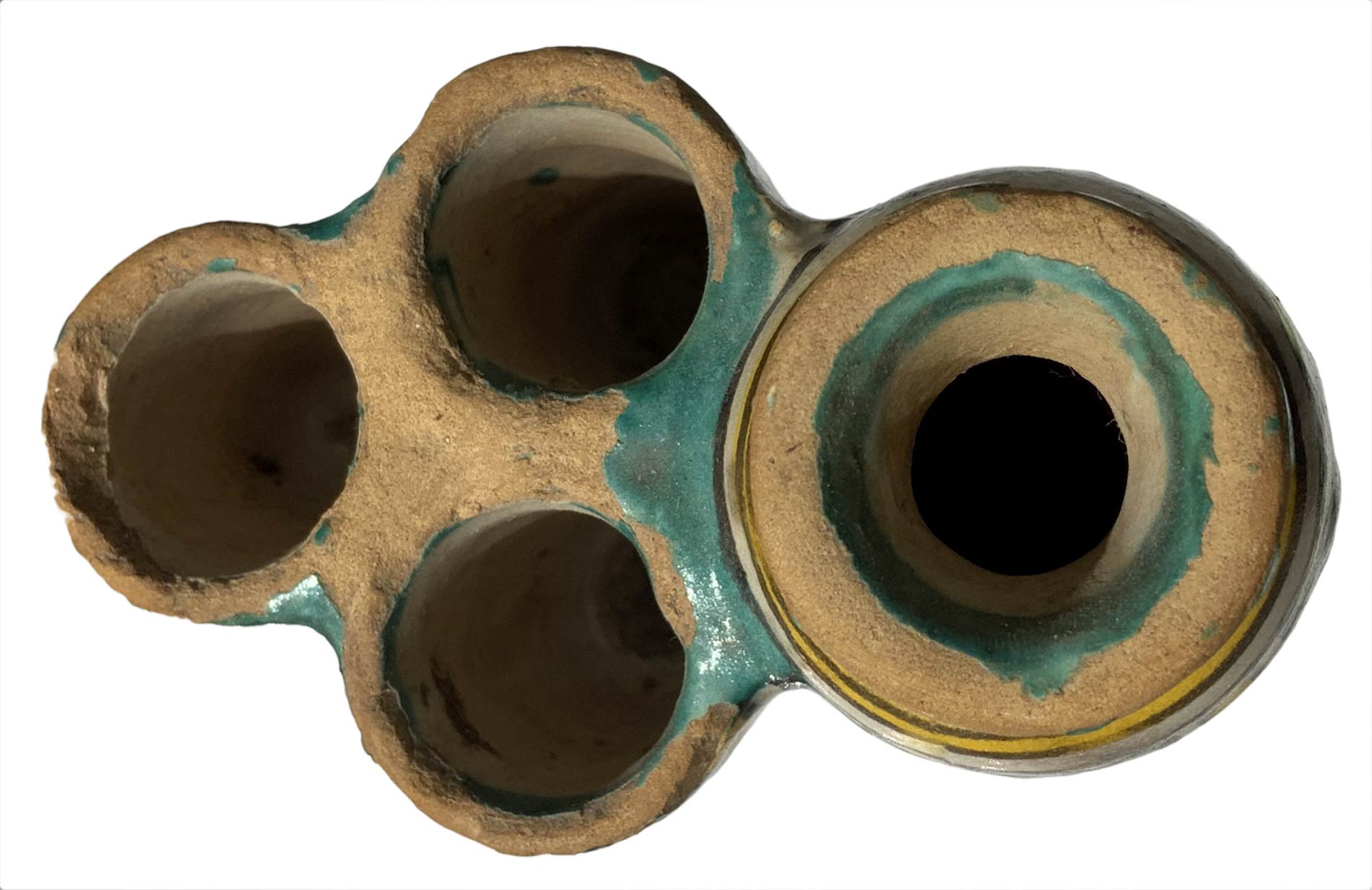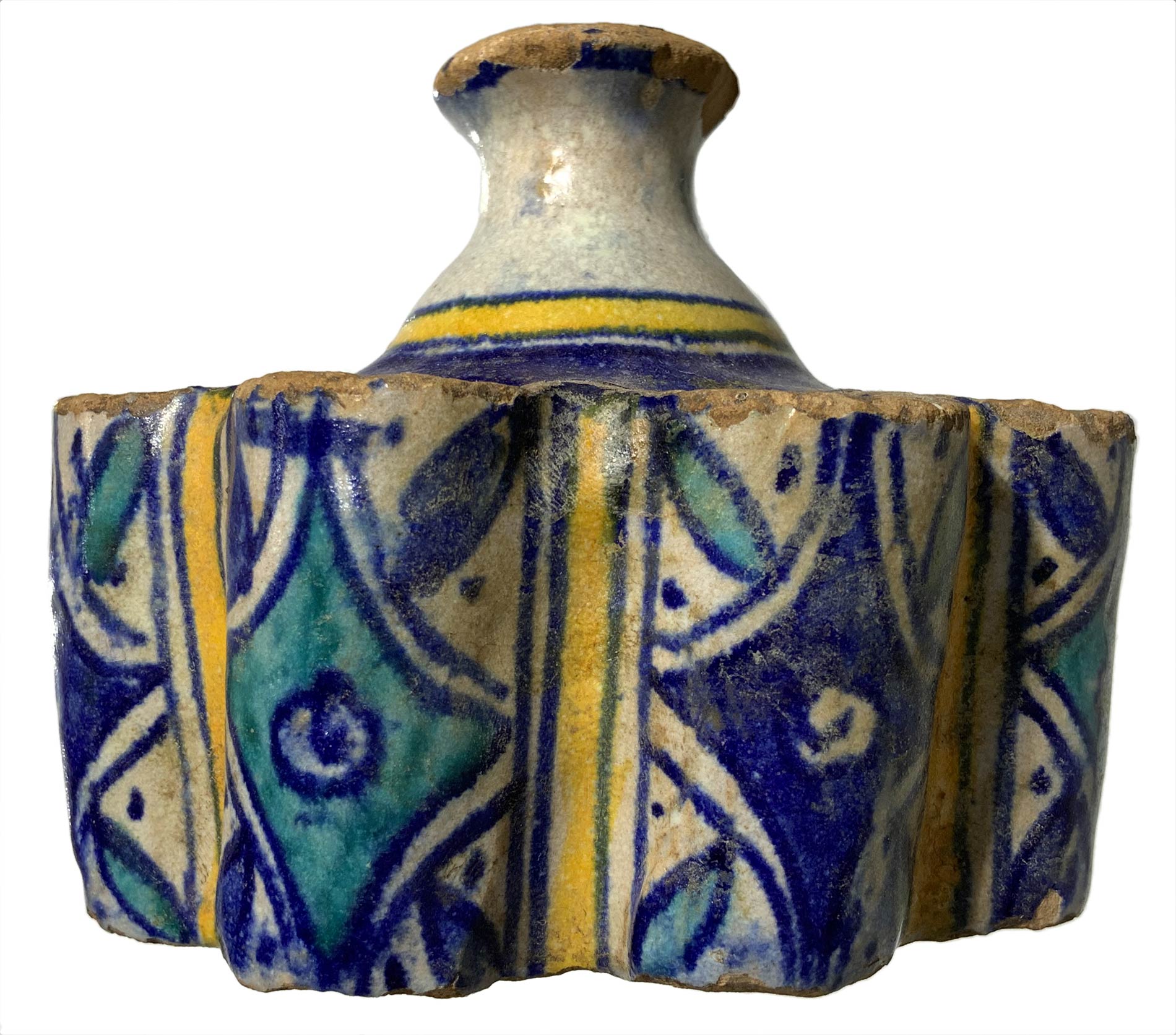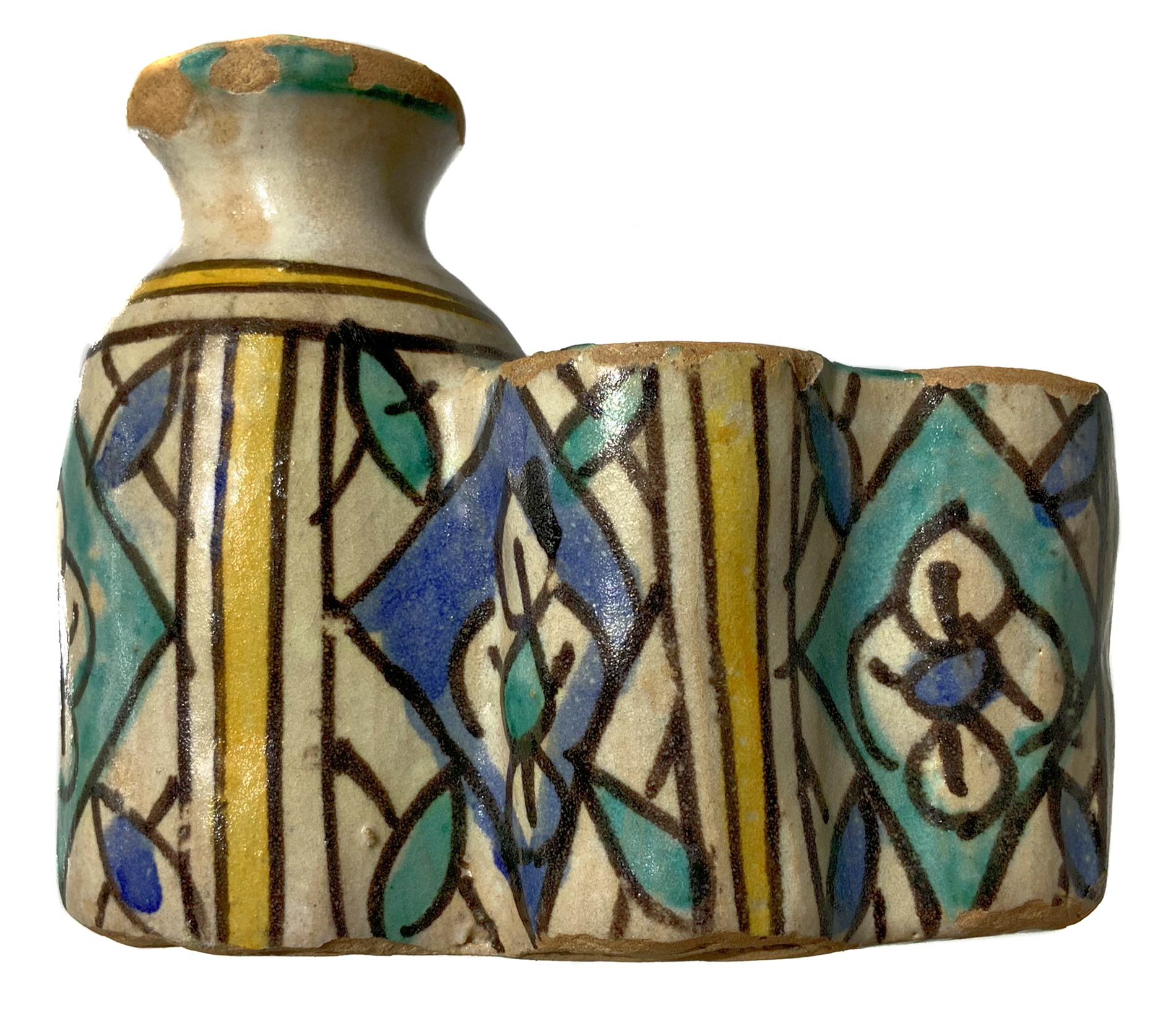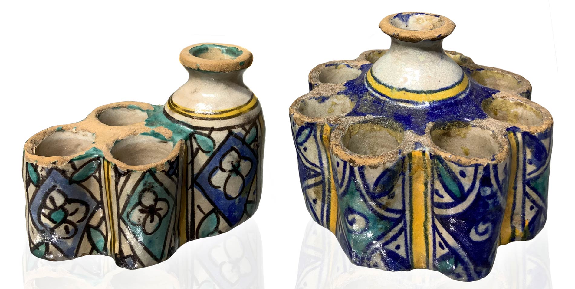 Due portainchiostro in terracotta smaltati e decorati. Marocco, metà XX...