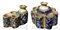 Due portainchiostro in terracotta smaltati e decorati. Marocco, metà XX secolo, cm 9 x 10 6,5; cm 9 x 11.