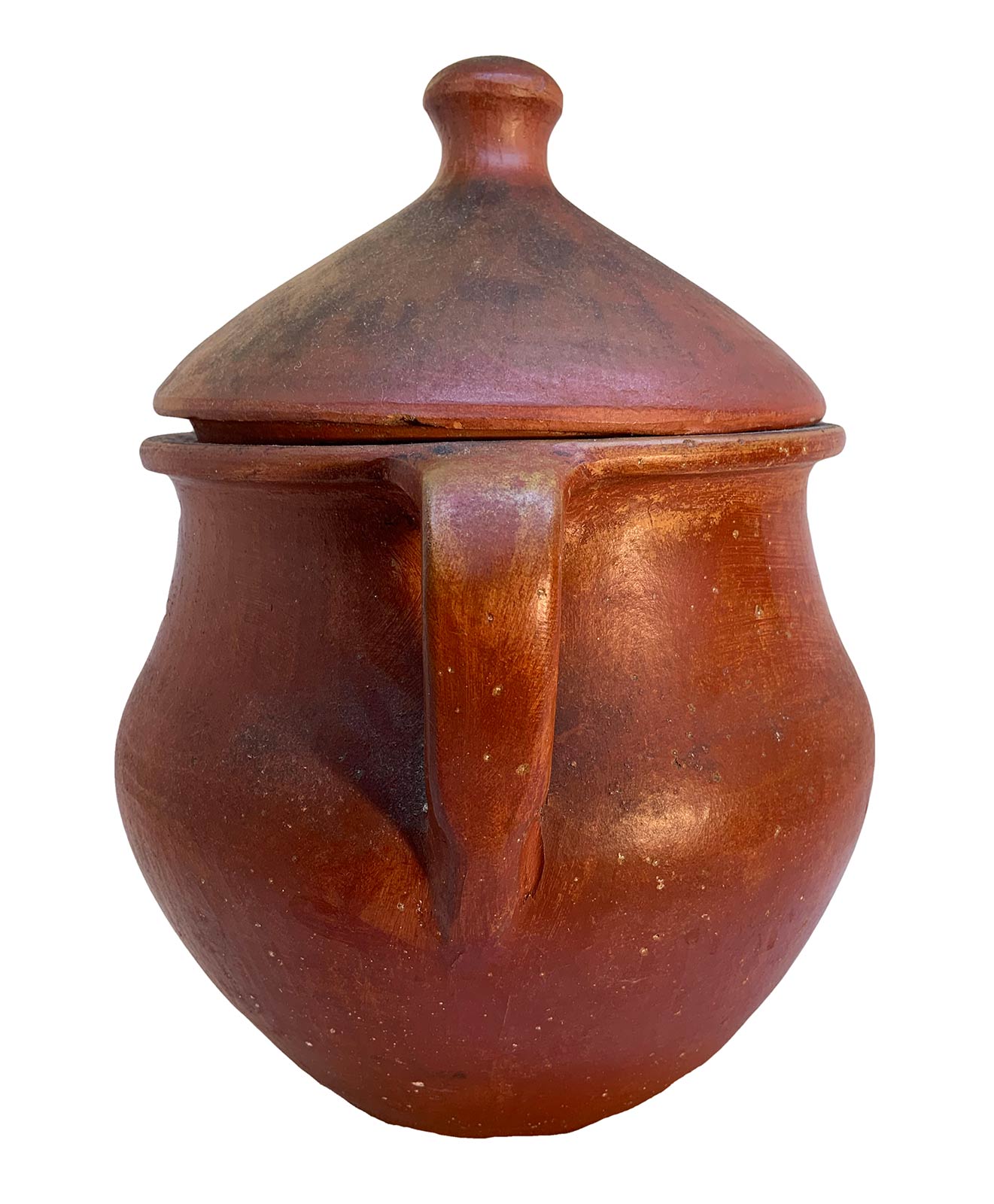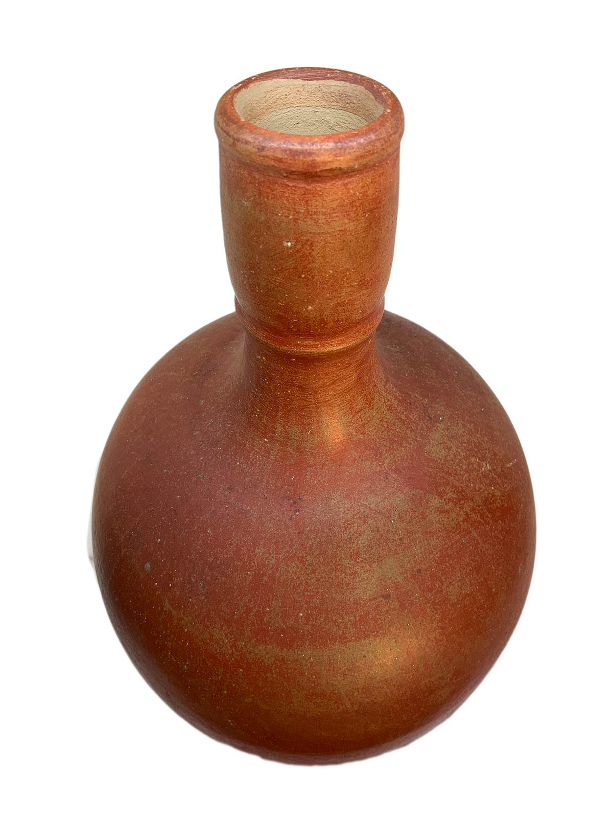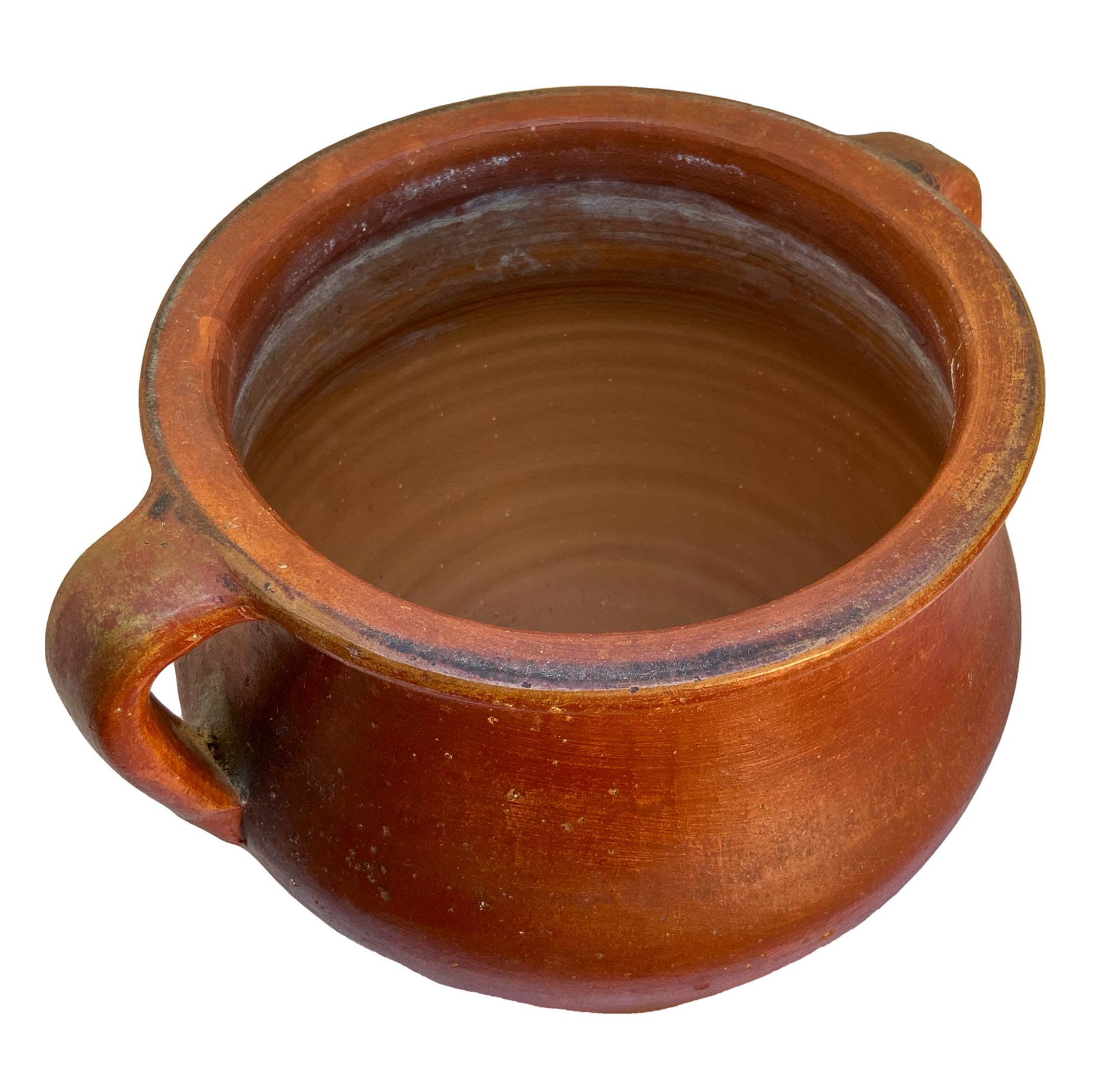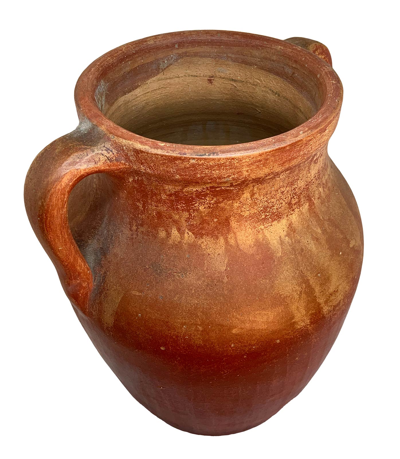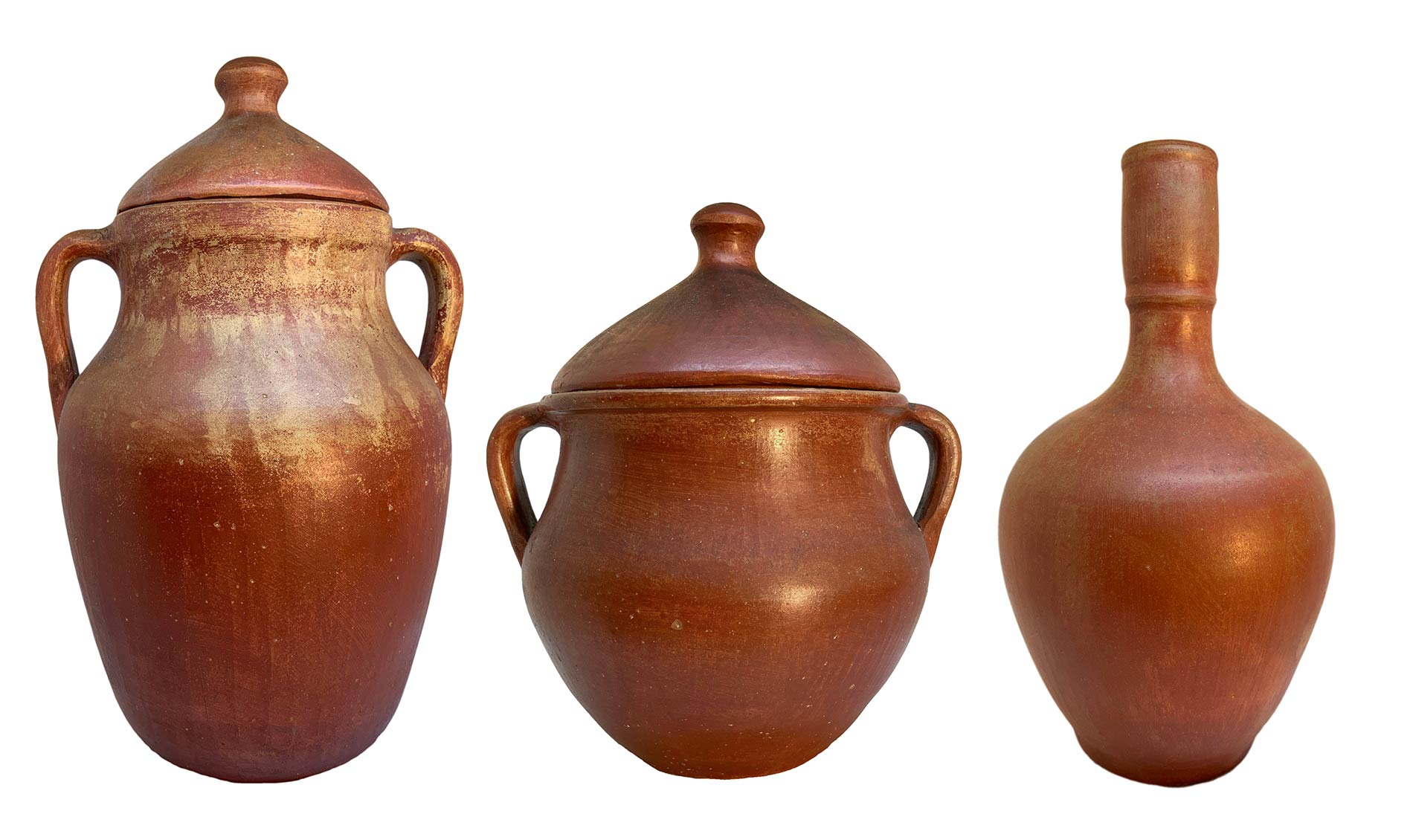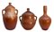 Tre vasi in cotto, colore rosso ruggine. H cm 33; cm 26 e cm21