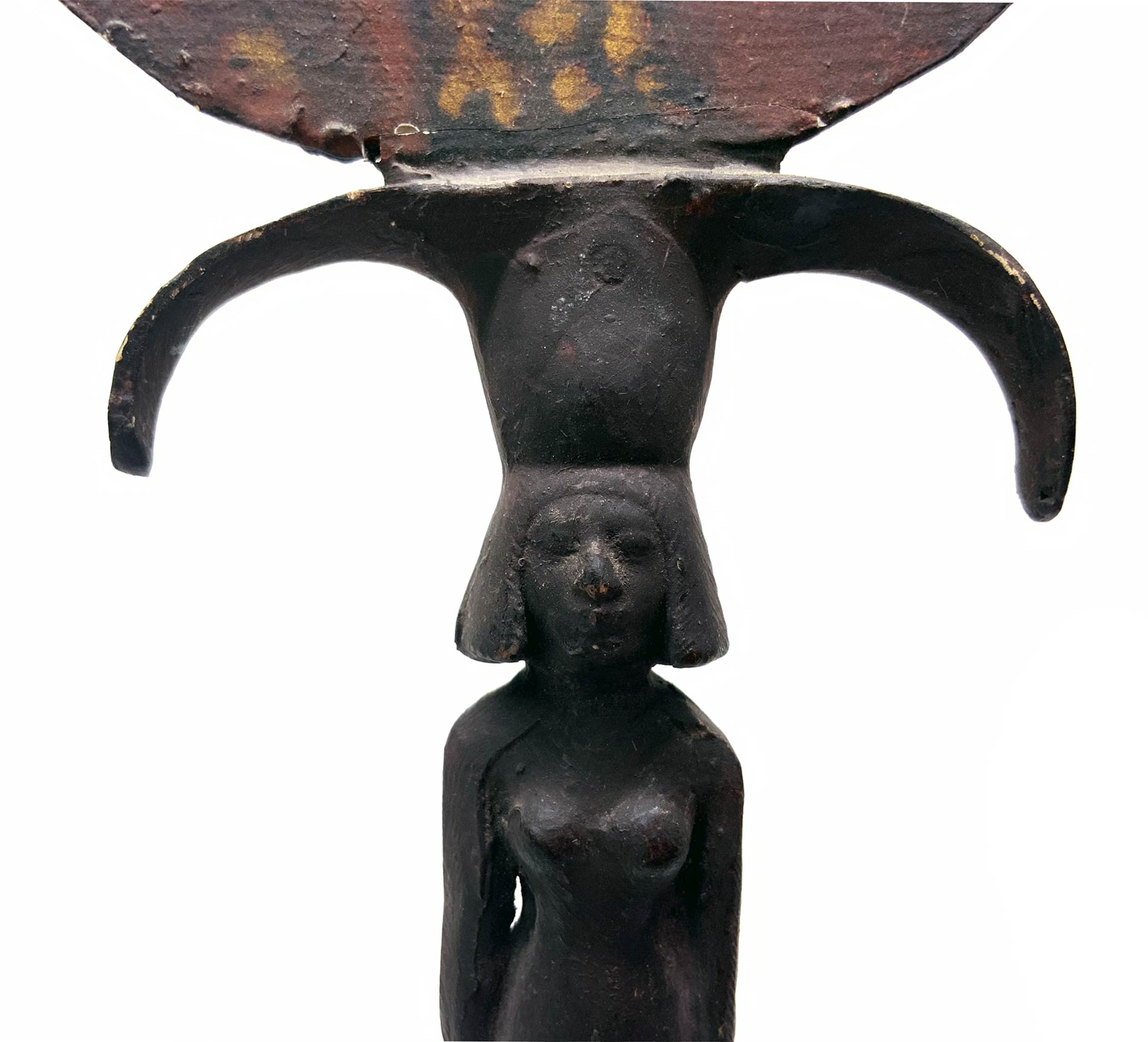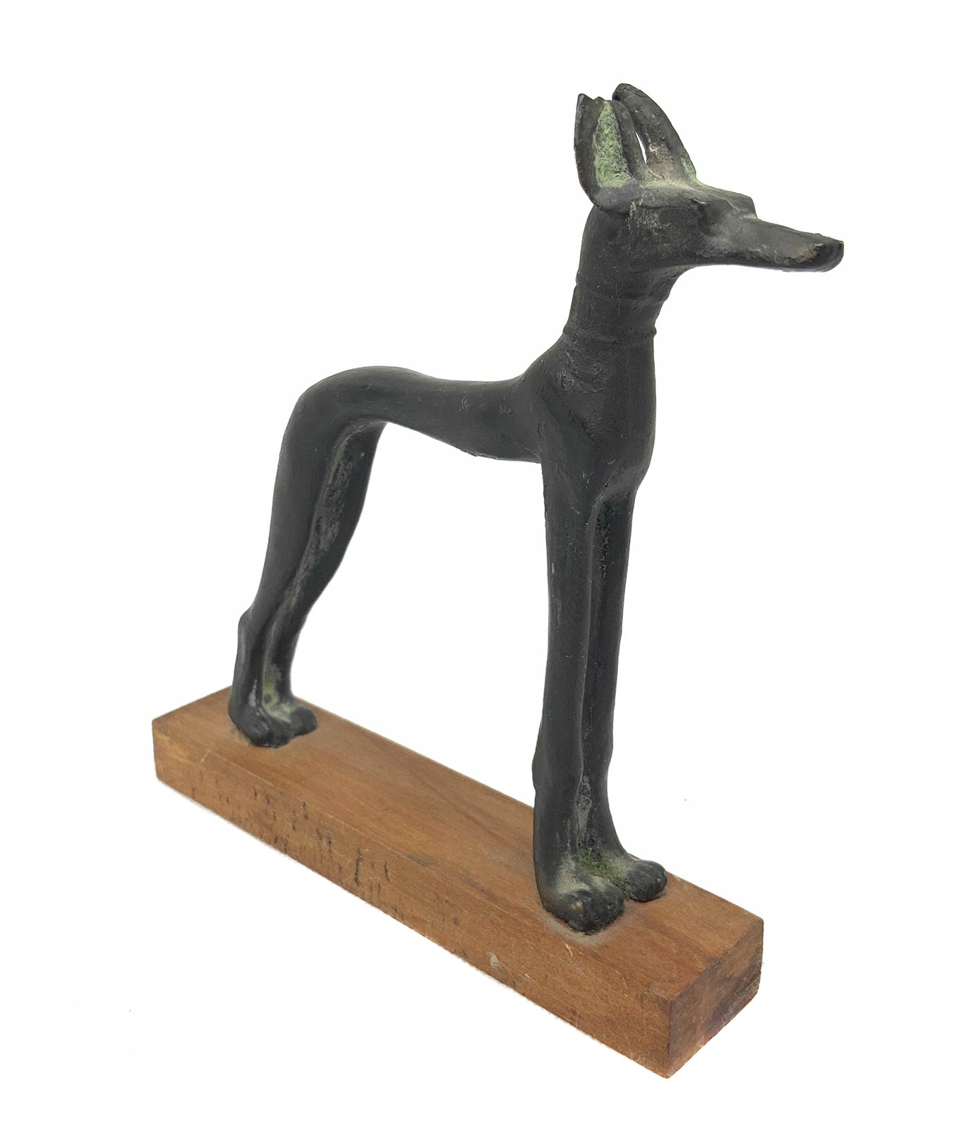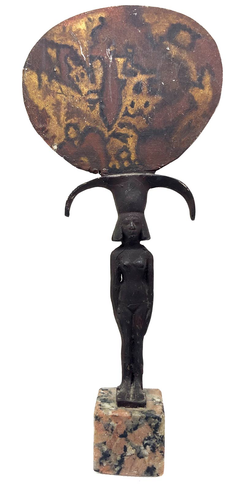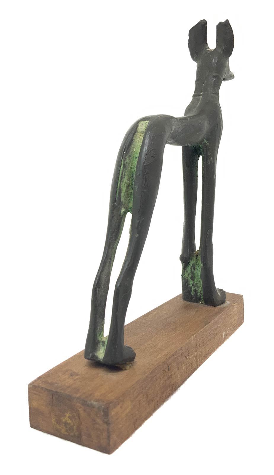 Specchio in ferro e statuetta in ferro raffigurante cane. Cm 28 e cm 15. Egitto, anni ’50.