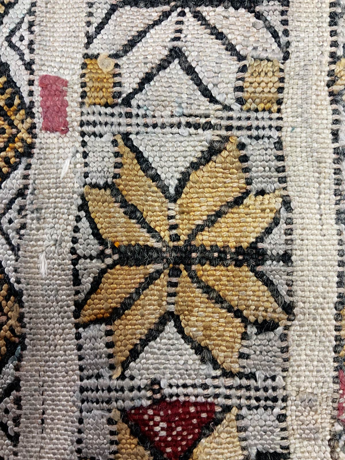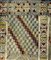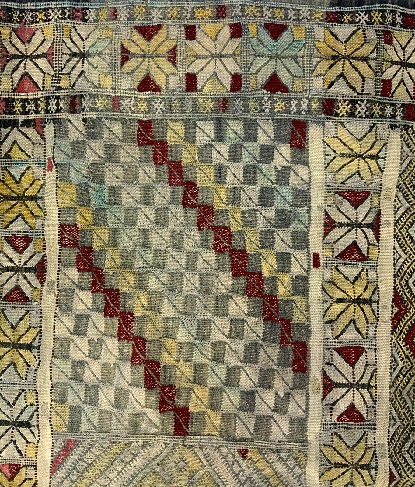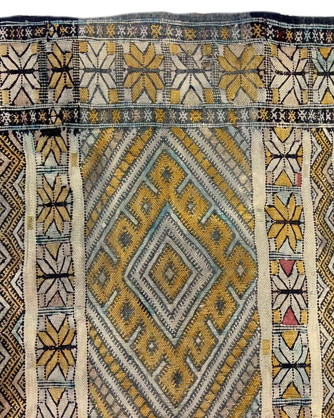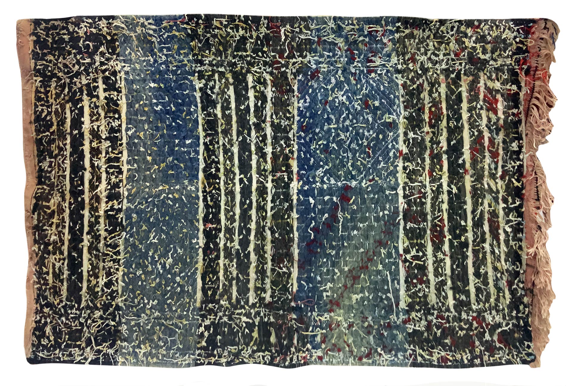 Tappeto artigianale nei toni del blu e giallo, Tunisia. Cm 140x92.