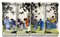 Quattro portainchiostro in porcellana decorati con figure della tradizione...