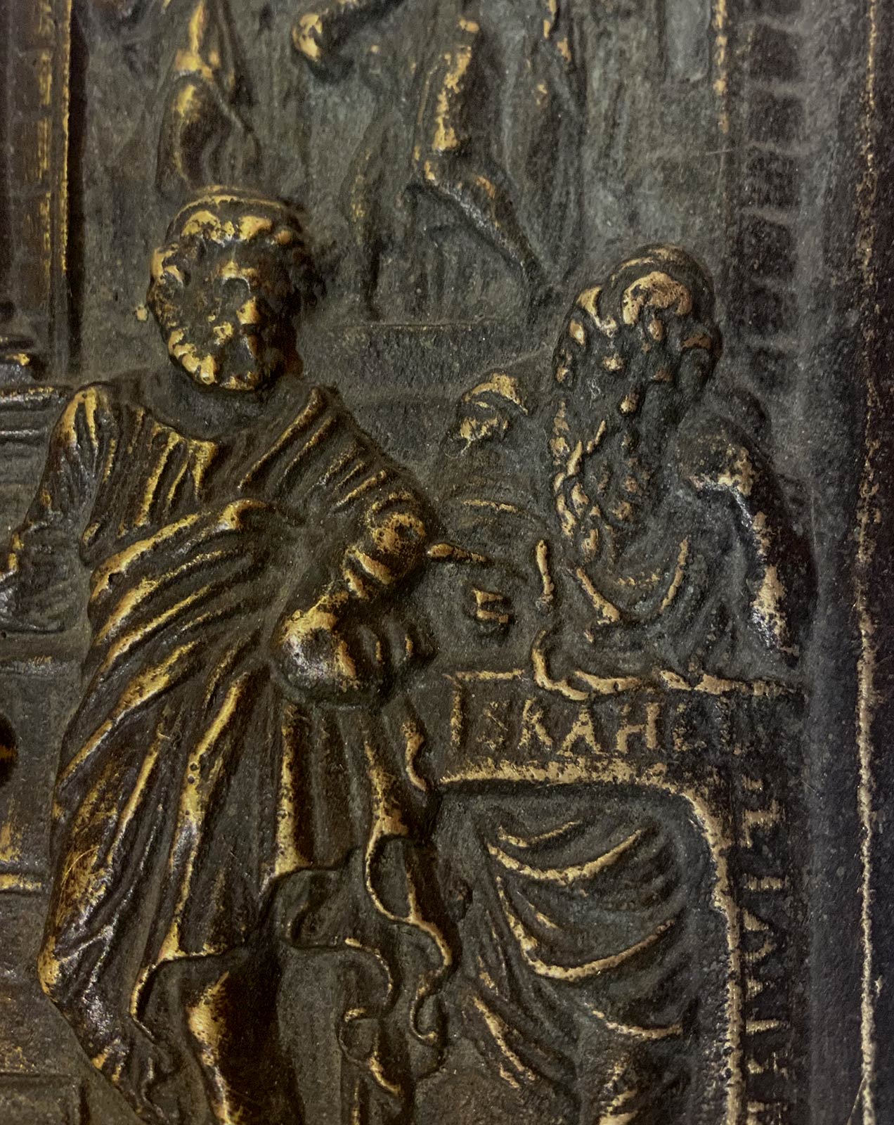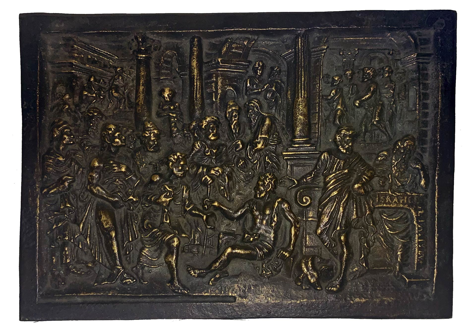 Placca in bronzo raffigurante scena biblica riportante scritta "Israel...