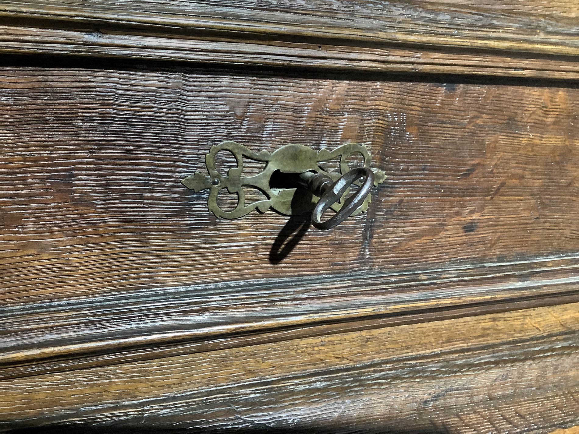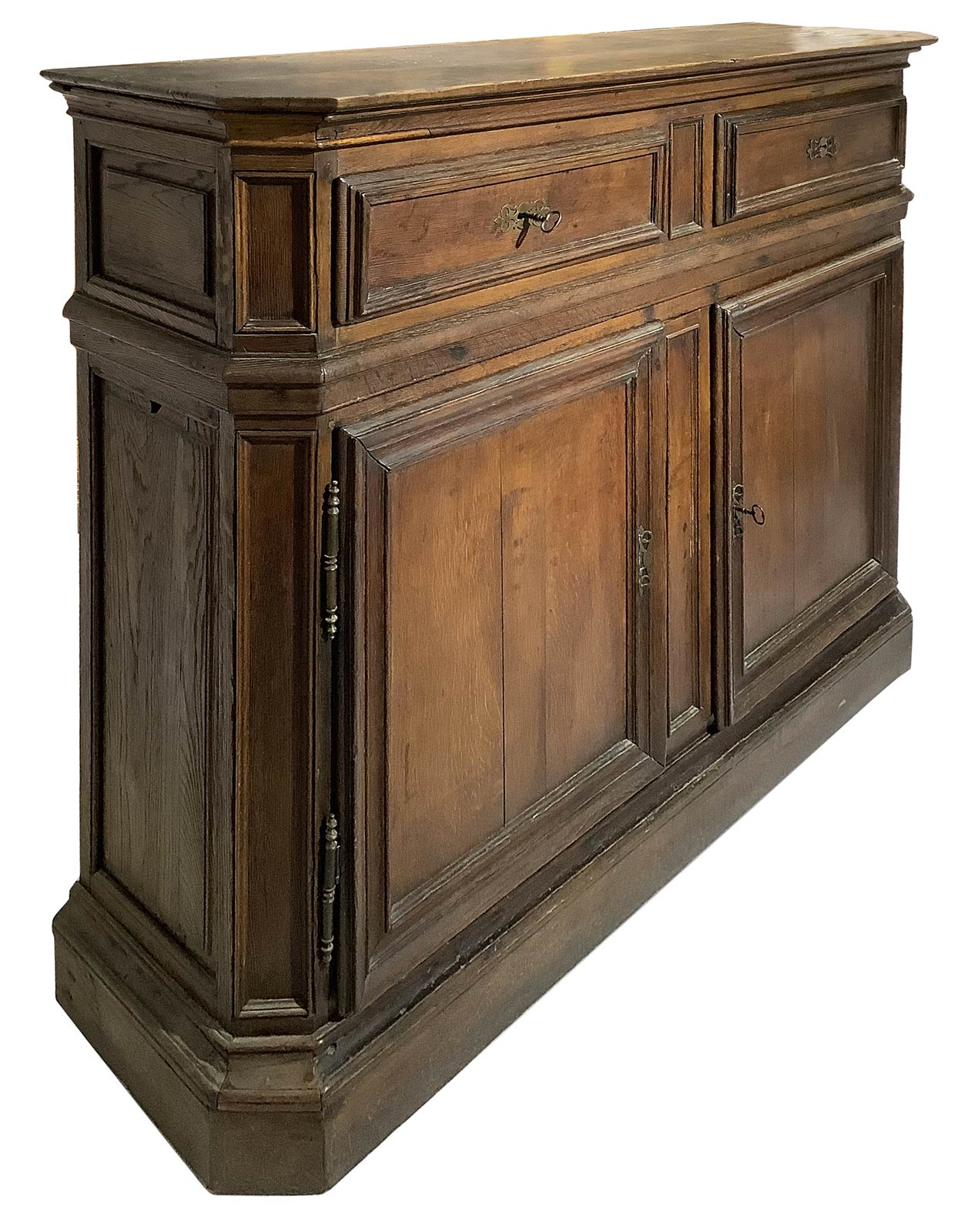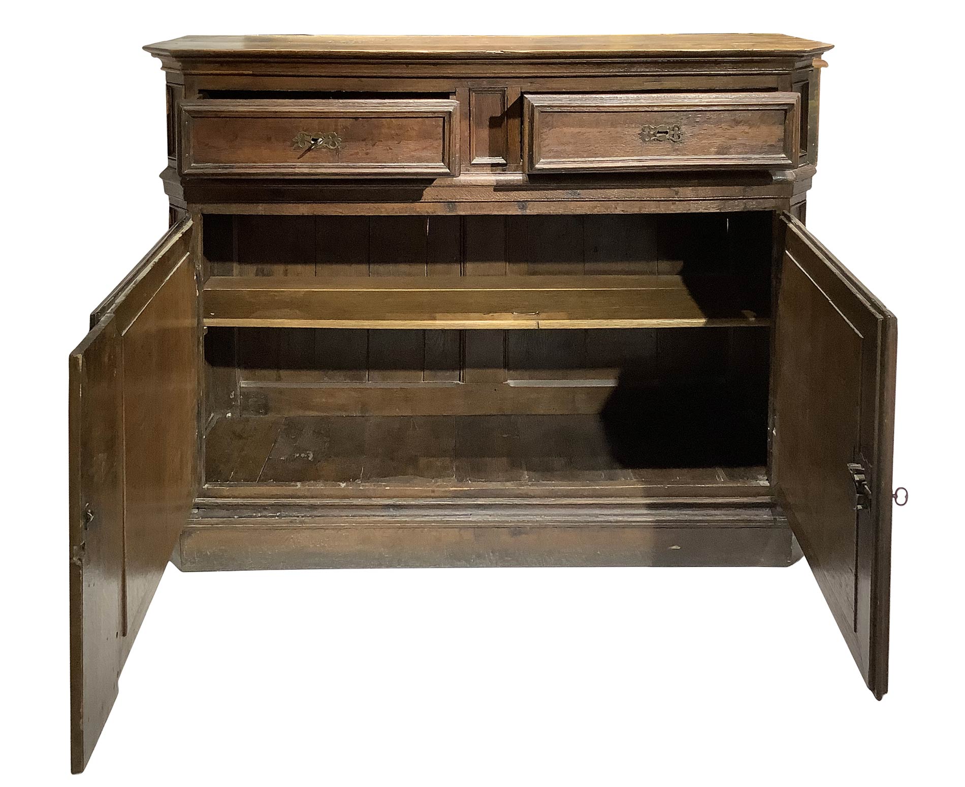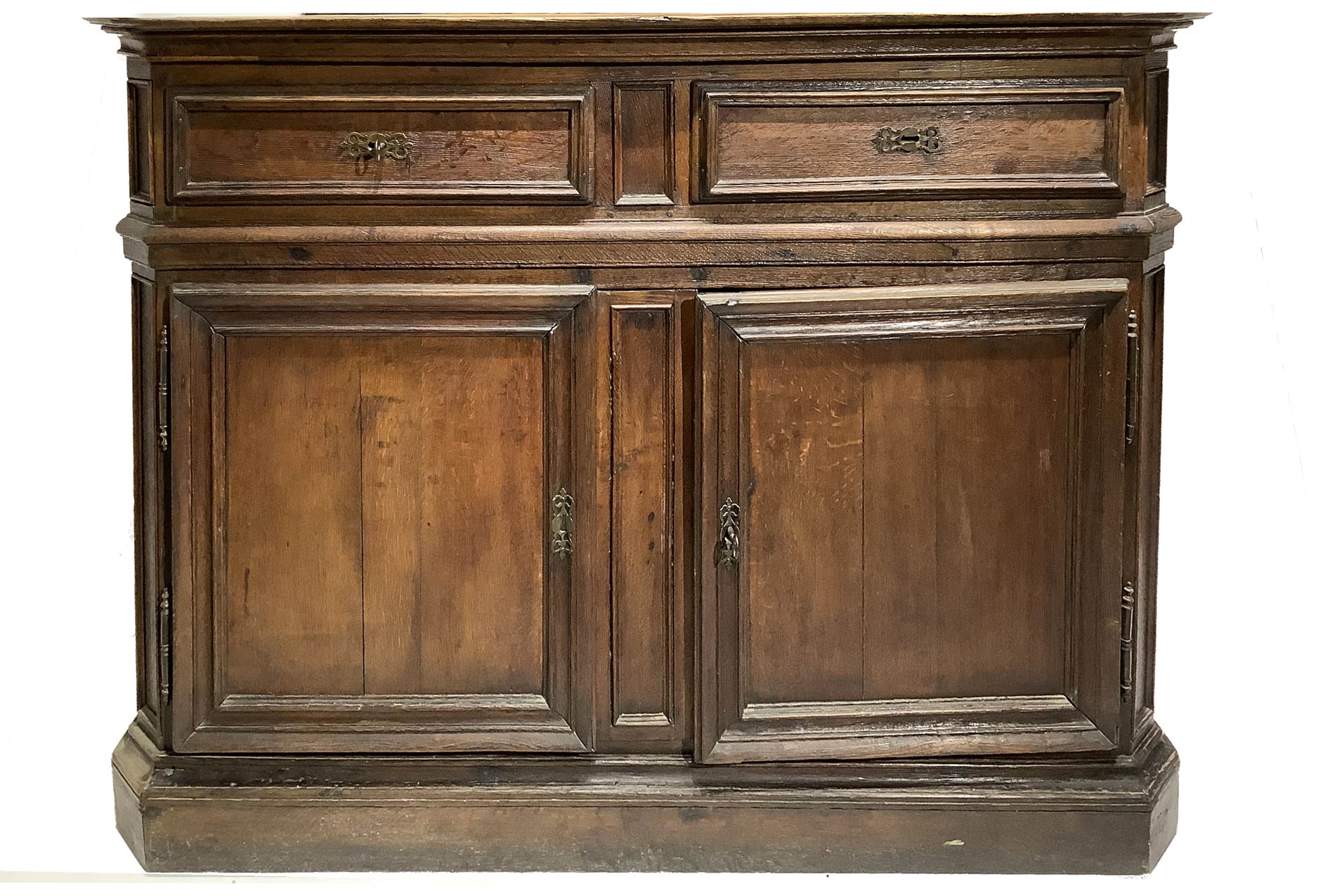 Servante-mobile da sacrestia, XVII/XVIII secolo, Sicilia. Due cassetti parte superiore, vano inferiore mensolato con sportelli a battenti. H cm 121, larghezza cm 160, profondità cm 45.