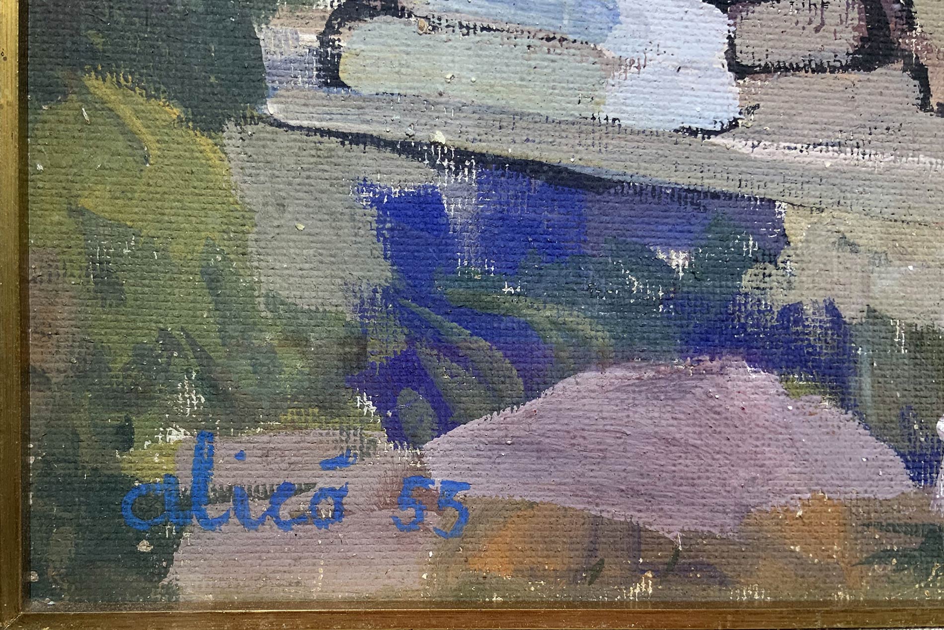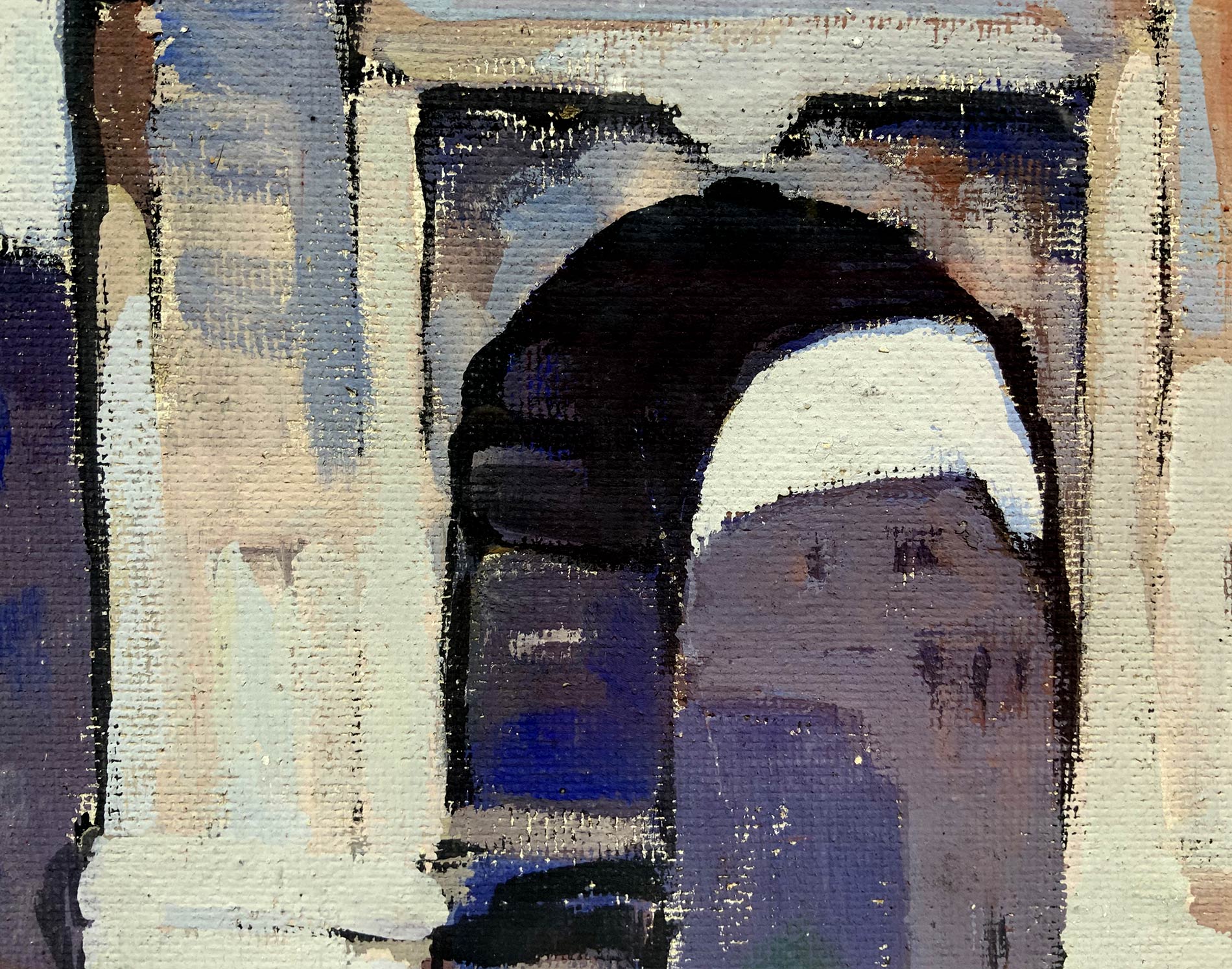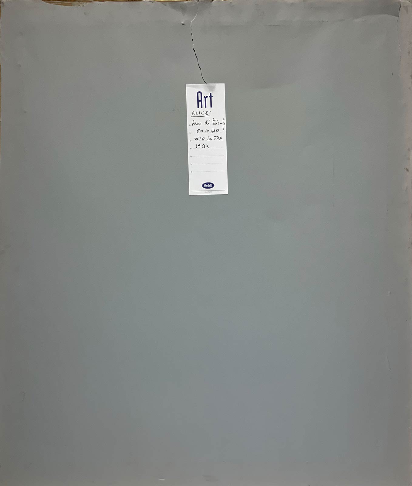 Dipinto raffigurante arco di trionfo di Alicò Giovanni (Catania 1906-1971). Cm 50x40, ad olio su masonite telata. Firmato e datato 1955 in basso a sinistra.