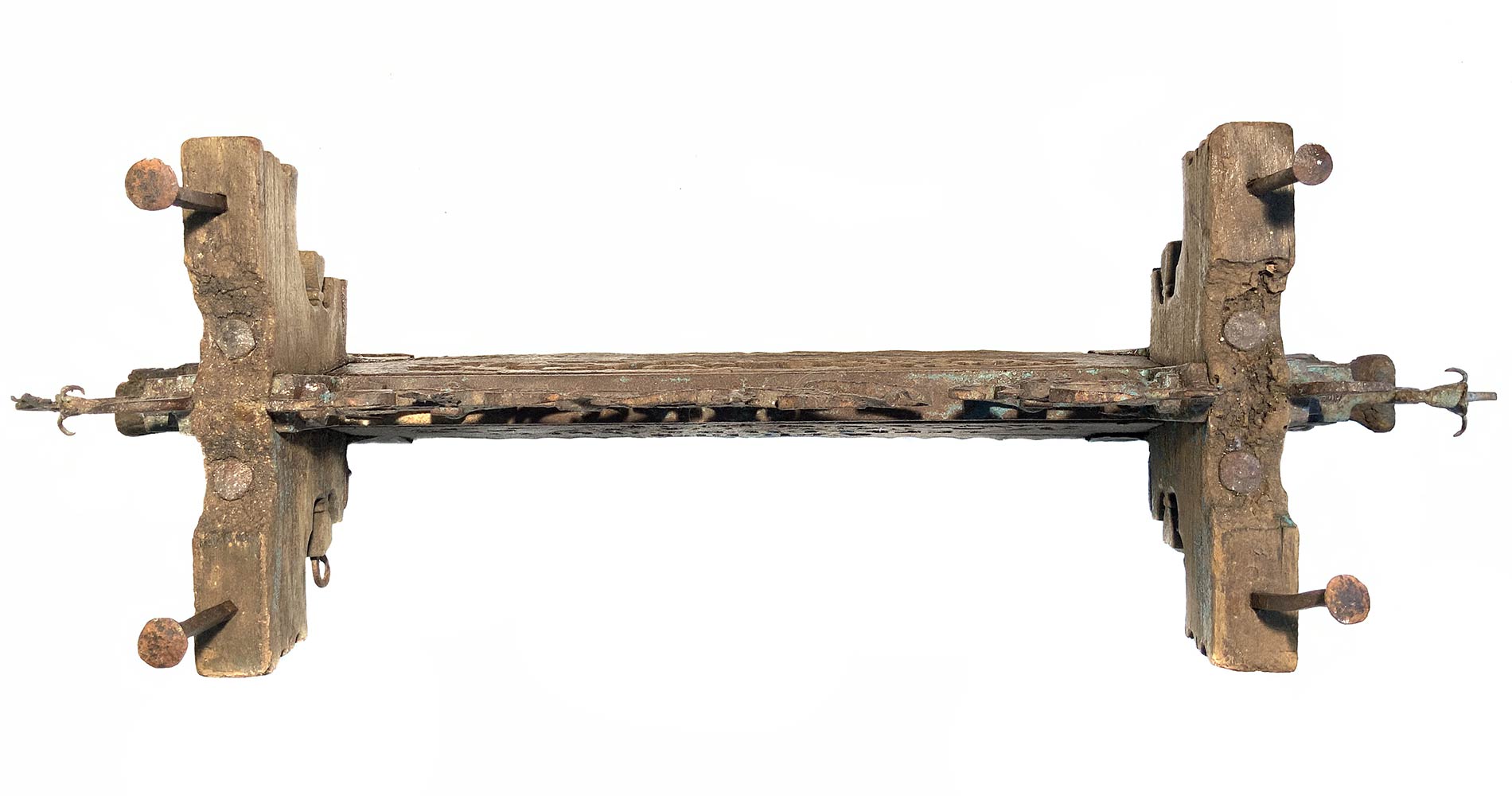 Lotto 289 | Supporto di carretto siciliano (cascia di fuso). Scultura in legno e ferro...