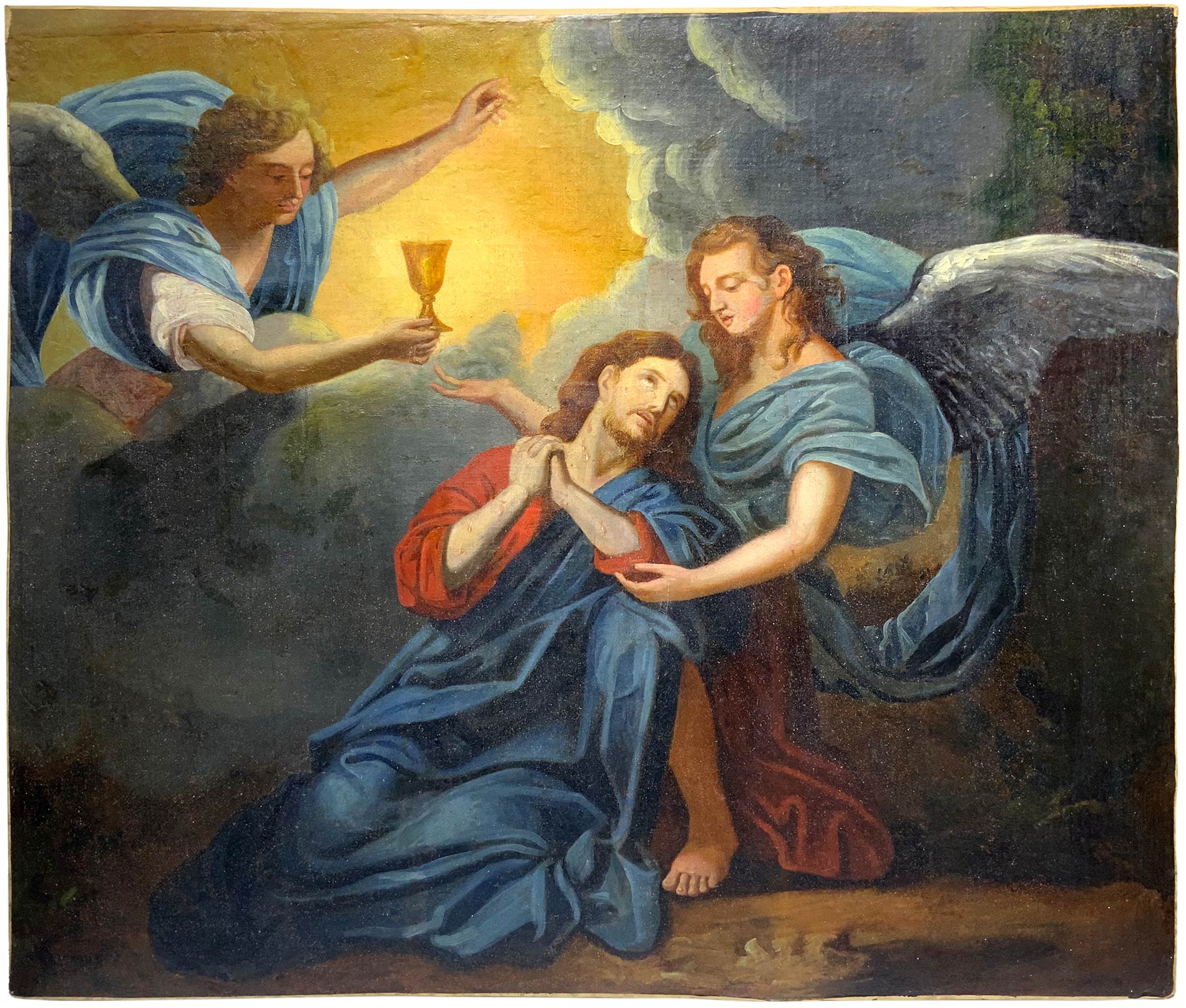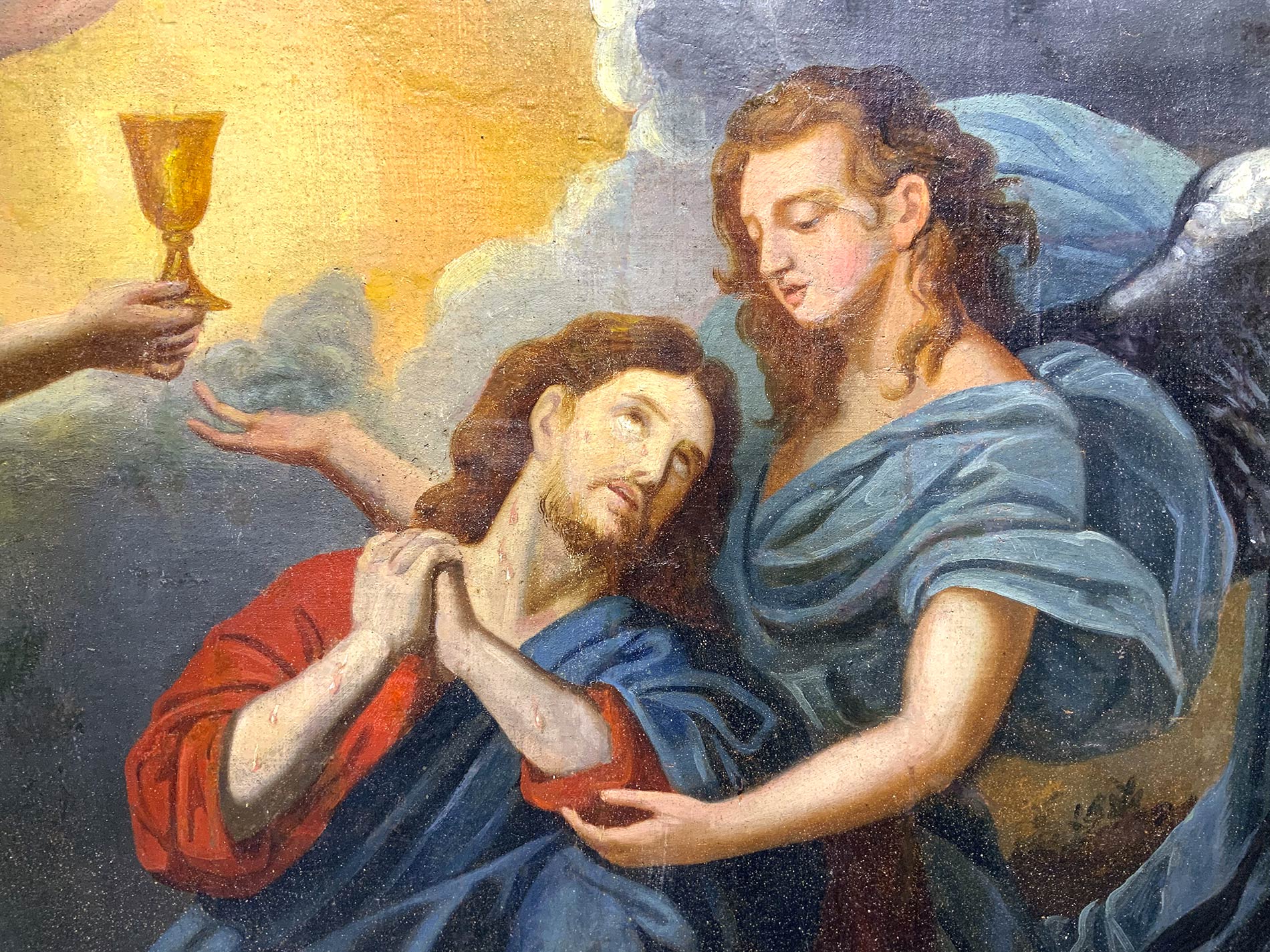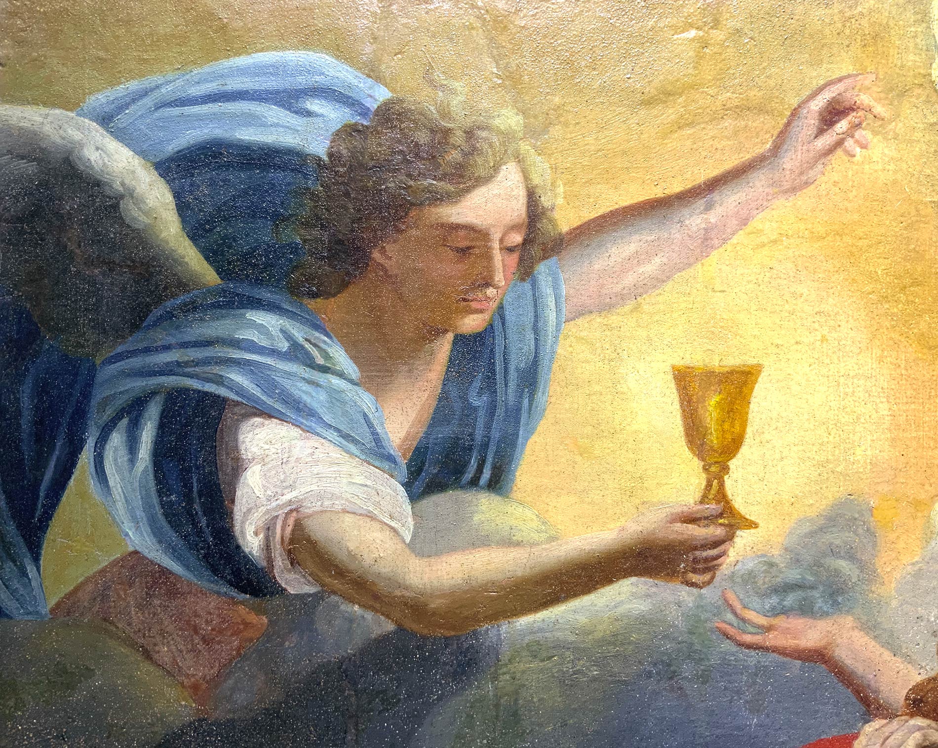 Dipinto ad olio su tela raffigurante scena biblica "Transustanziazione di...