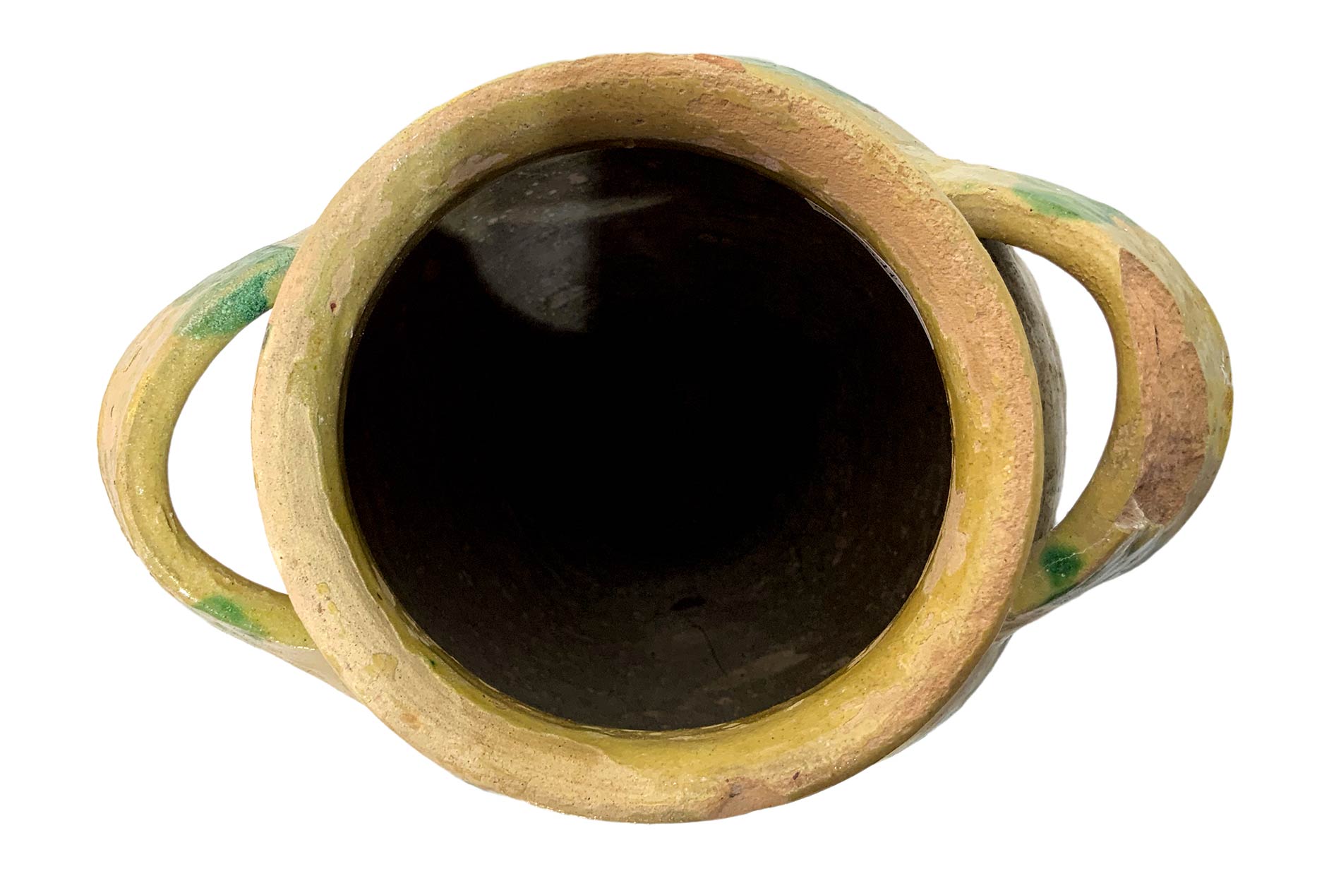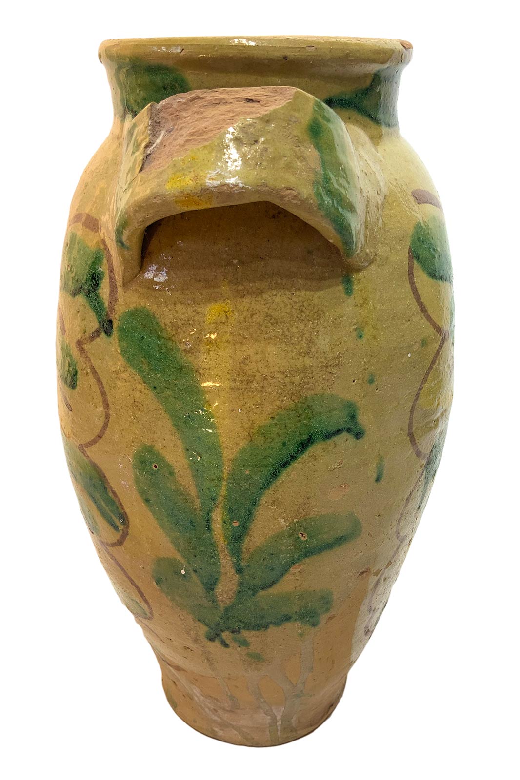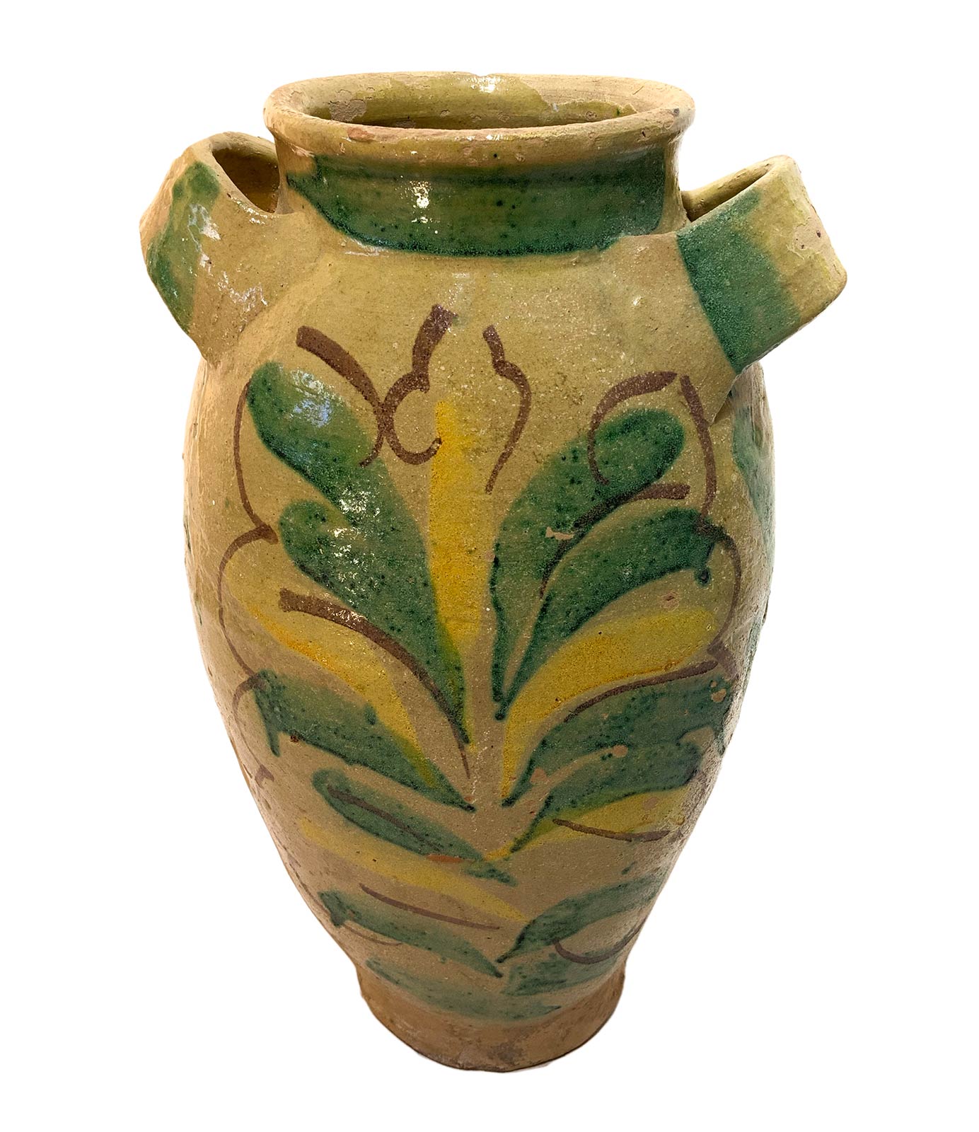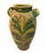 Vaso biansato in maiolica di Burgio, fine XIX secolo. Decorato a foglie verdi e gialle. H cm 37.