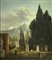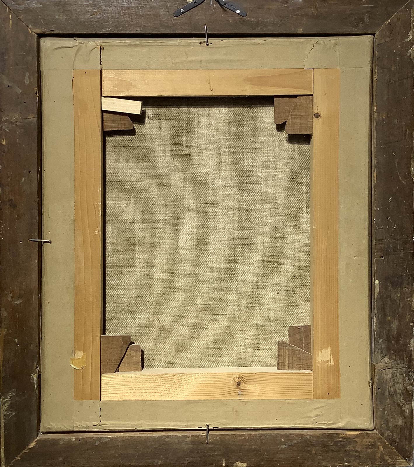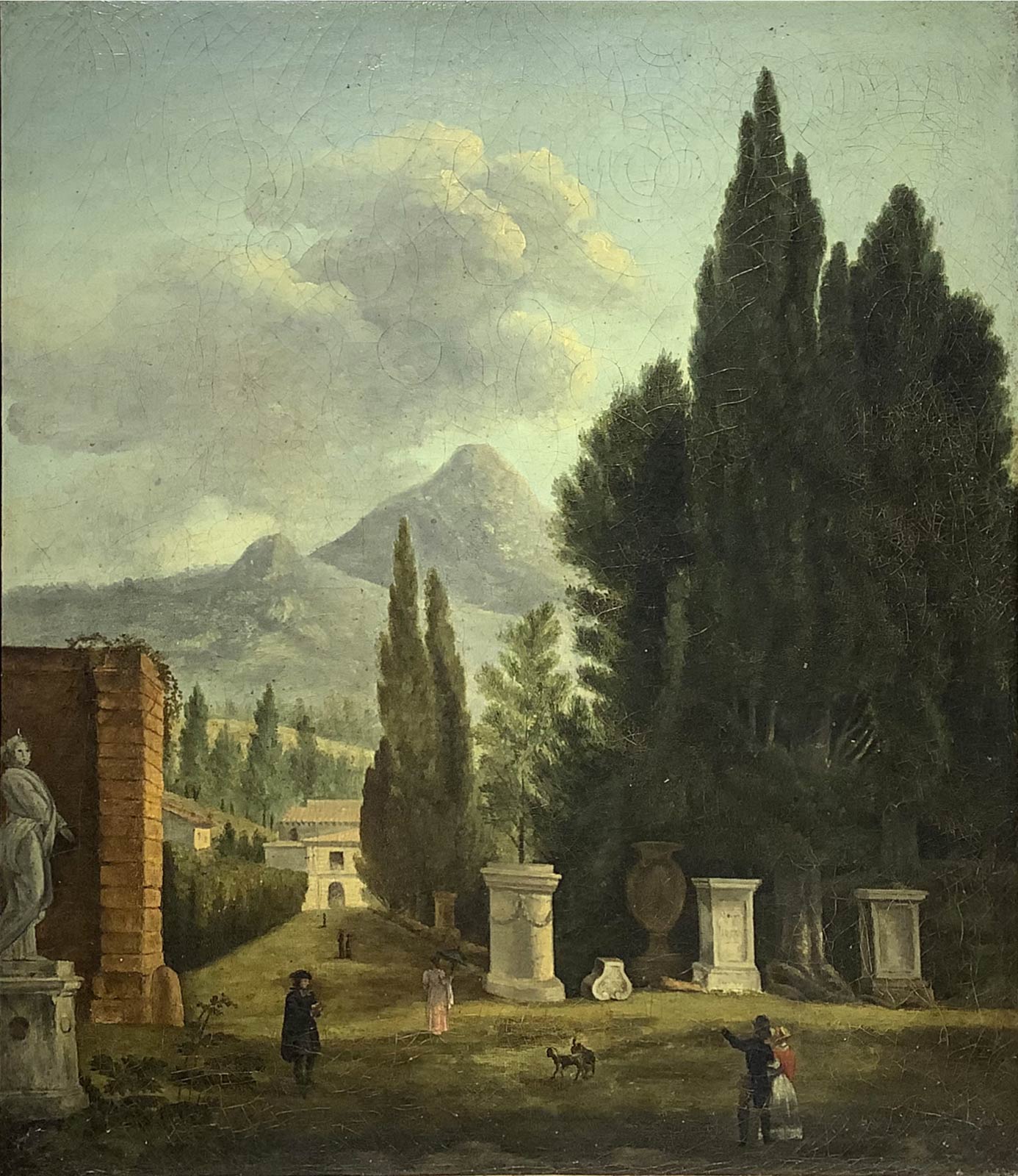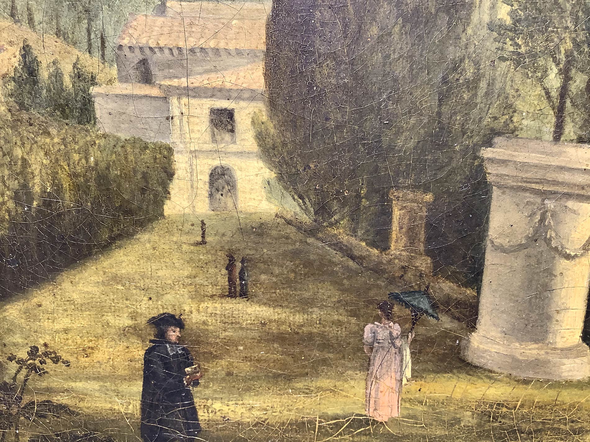 Lotto 310 | Dipinto ad olio su tela raffigurante paesaggio con alberi, personaggi e...
