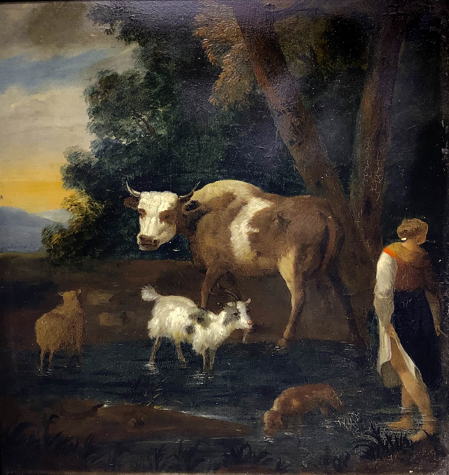 Lotto 311 | Dipinto raffigurante buoi e capre, del XVII secolo, pittore fiammingo. Olio...