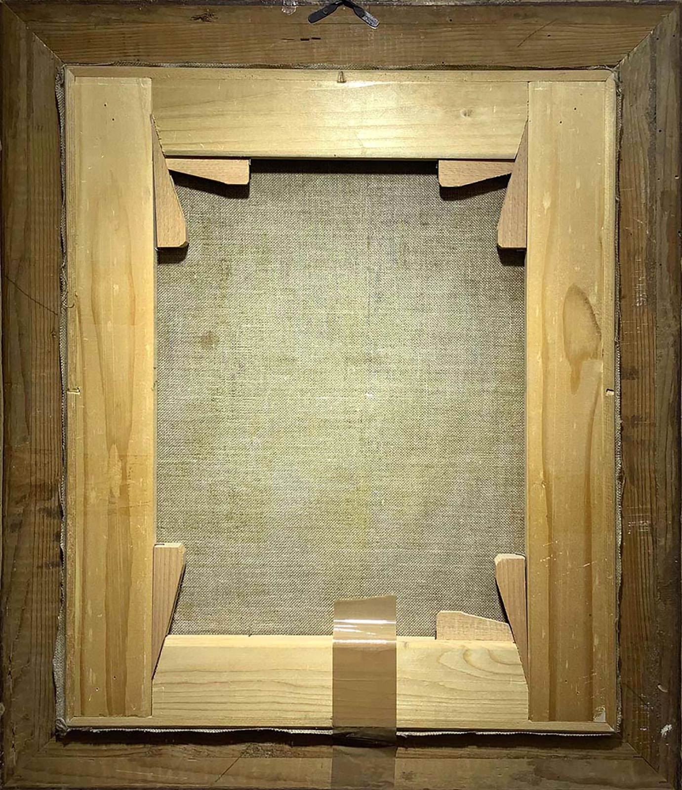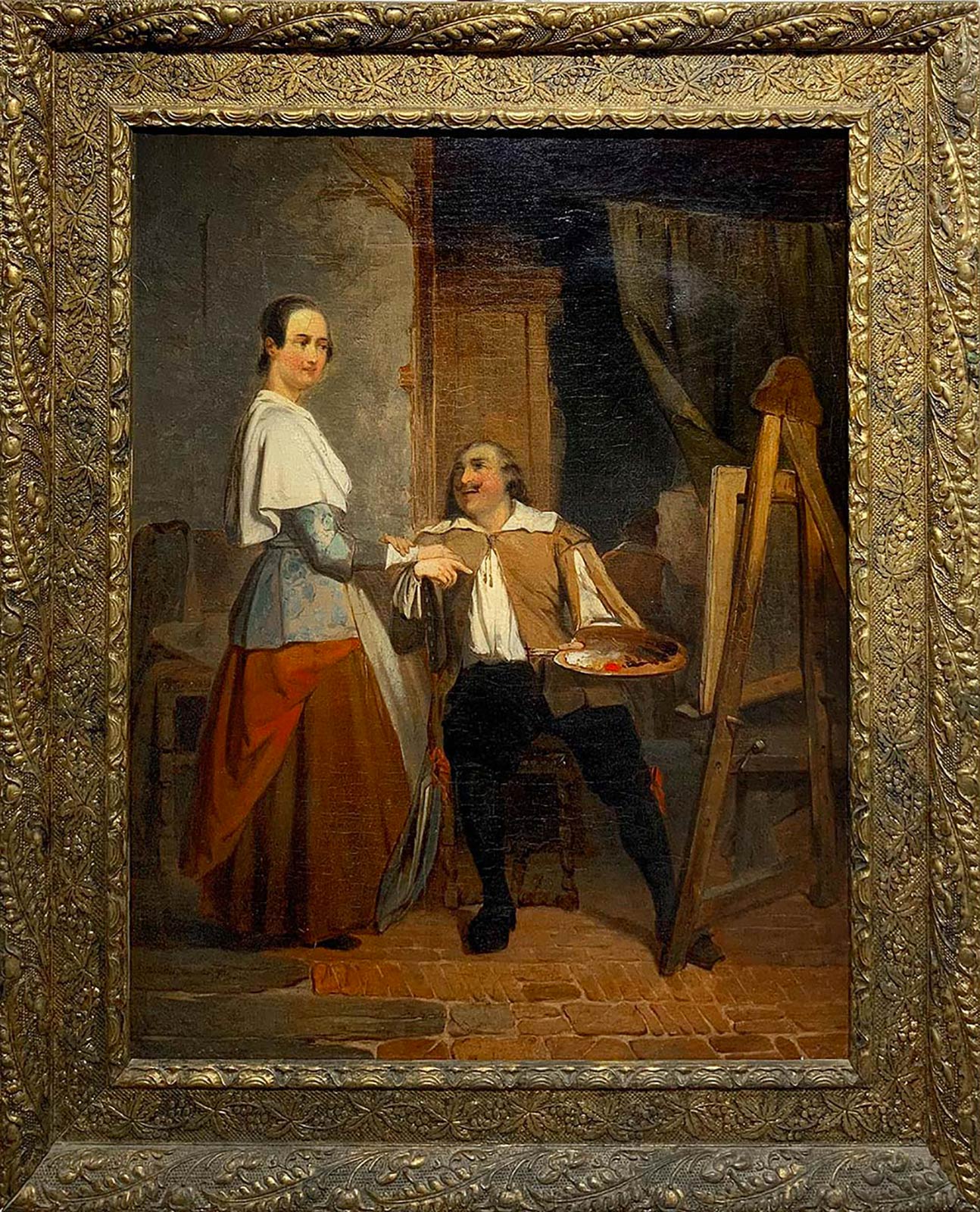Dipinto ad olio su tela raffigurante pittore e modella. Ignatius Josephus van Regemorter (Anversa,1785-Anversa,1873). 53x43 Firmato in basso a sinistra J. Van Regemorter F.