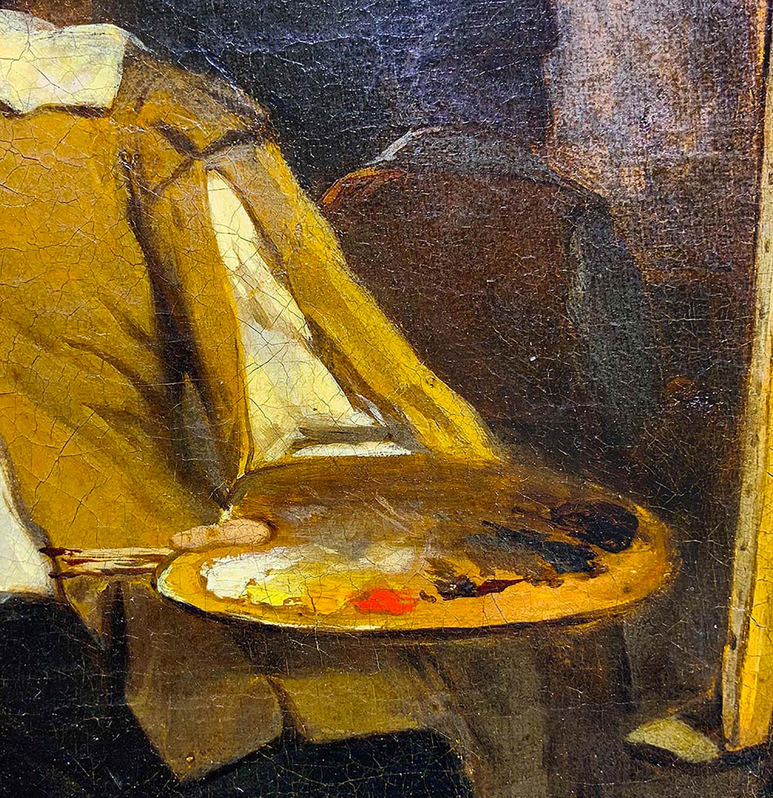 Dipinto ad olio su tela raffigurante pittore e modella. Ignatius Josephus van...