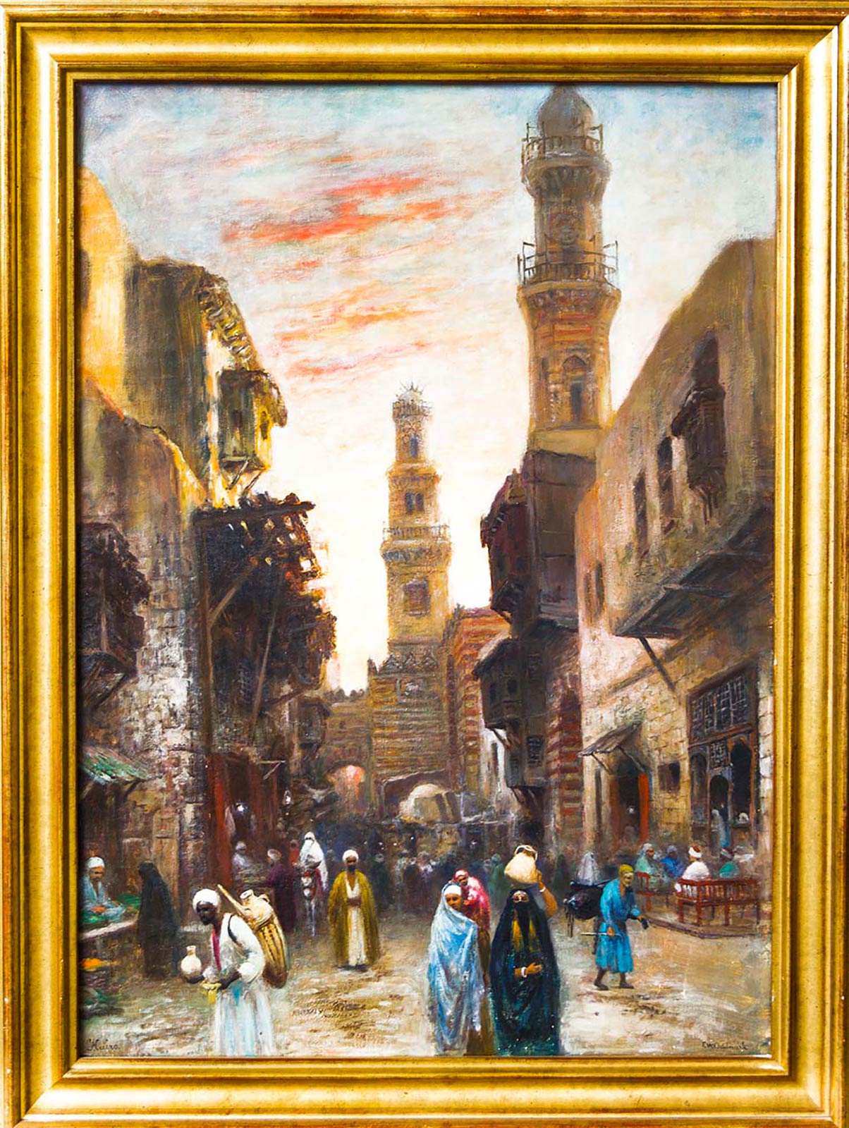 Dipinto ad olio su tela raffigurante il Cairo di Frans Wilhelm Odelmark, pittore orientalista svedese (Vastervik, 1849 - Stoccolma, 1937 ). Cm 95x70. Firmato in basso a destra. E’ stato un pittore realista che dipingeva durante i suoi numerosi viaggi fatti in tutta Europa e in Oriente. Soggiornò parecchi anni al Cairo, traendo ispirazione dal vivo.
