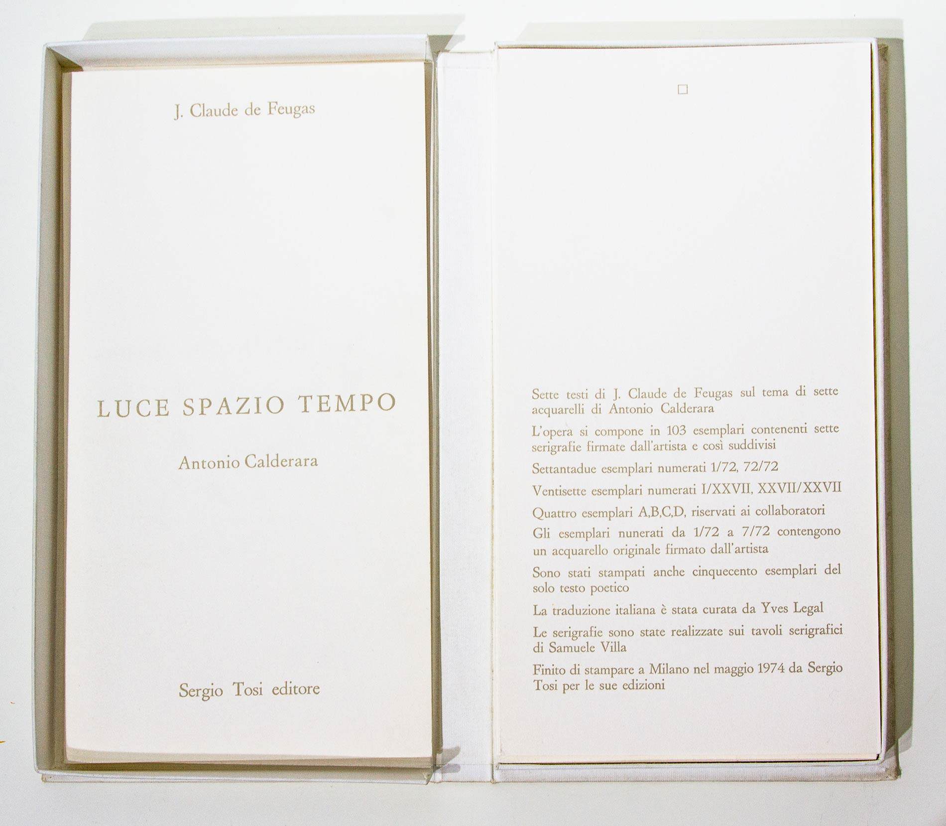 Calderara Antonio (Abbiategrasso 1903- 1978 Lago d'Orta). “Luce spazio tempo”, volume di poesie con 7 grafiche firmate dall'artista. 1974. Es. 18/72.