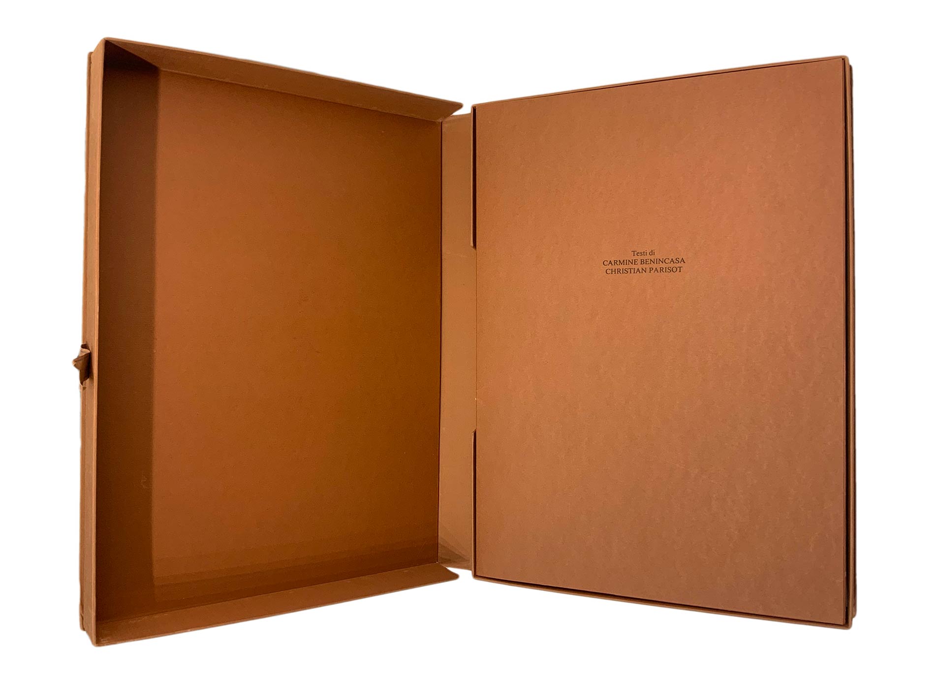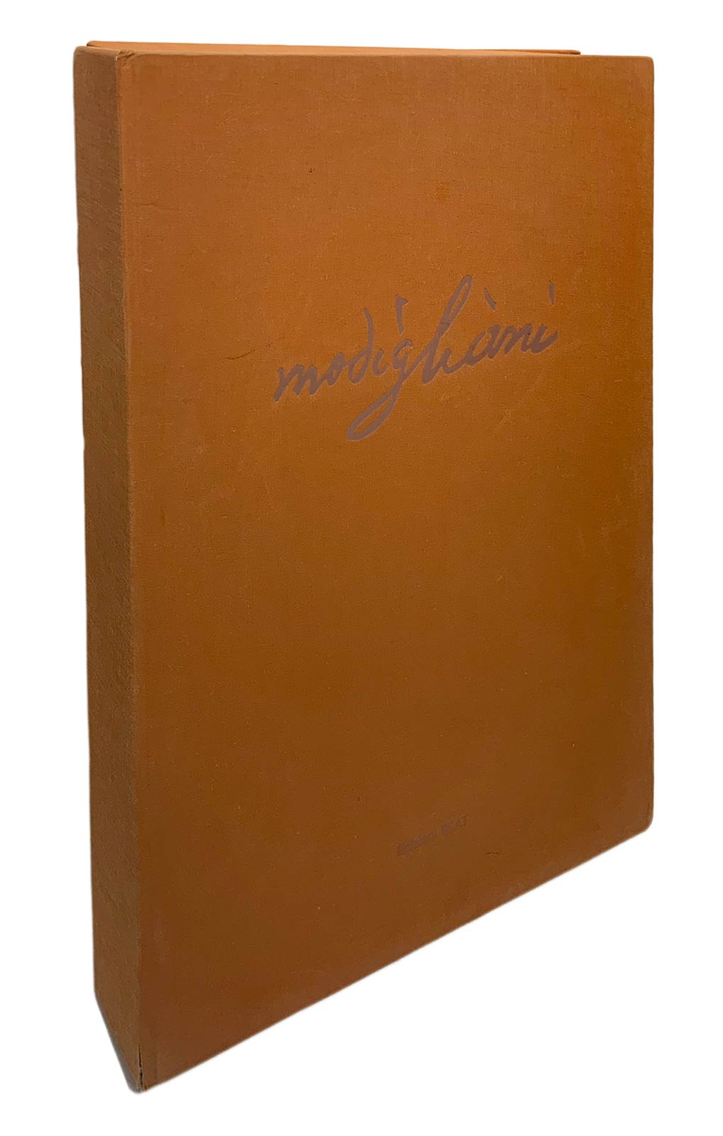 “Modigliani”, testi a cura di Carmine Benincasa e Christian Parisotto. Edizione Seat 1989. Tavole fedeli su carte della cartiera Miliani di Fabriano. Cartella di grandissimo formato 40x60x10 cm contenente 46 tavole protette da carta feltro ed un testo storico critico. Ottimo stato. Opera completa. Esemplare 1239 Cartelle sciolte.
